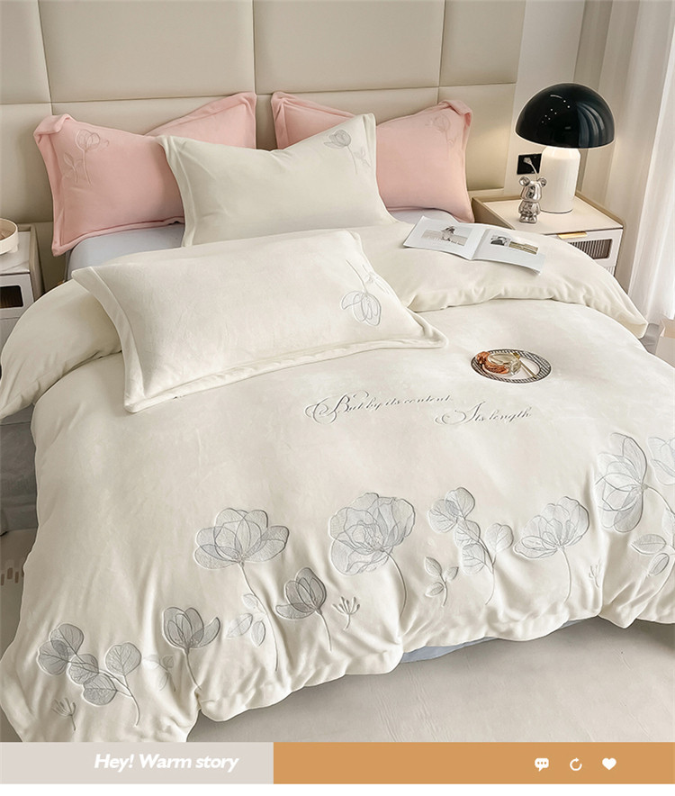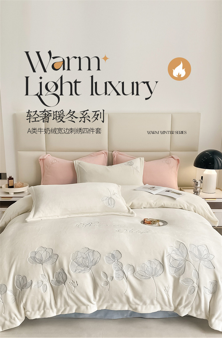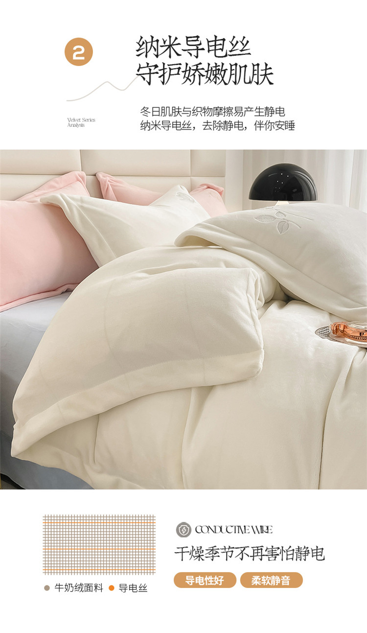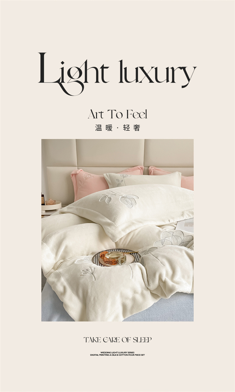 (总)懒猫家纺 2025新款亲肤舒适牛奶绒四件套-可可小姐系列,可可小姐-瓷白,可可小姐-水粉
