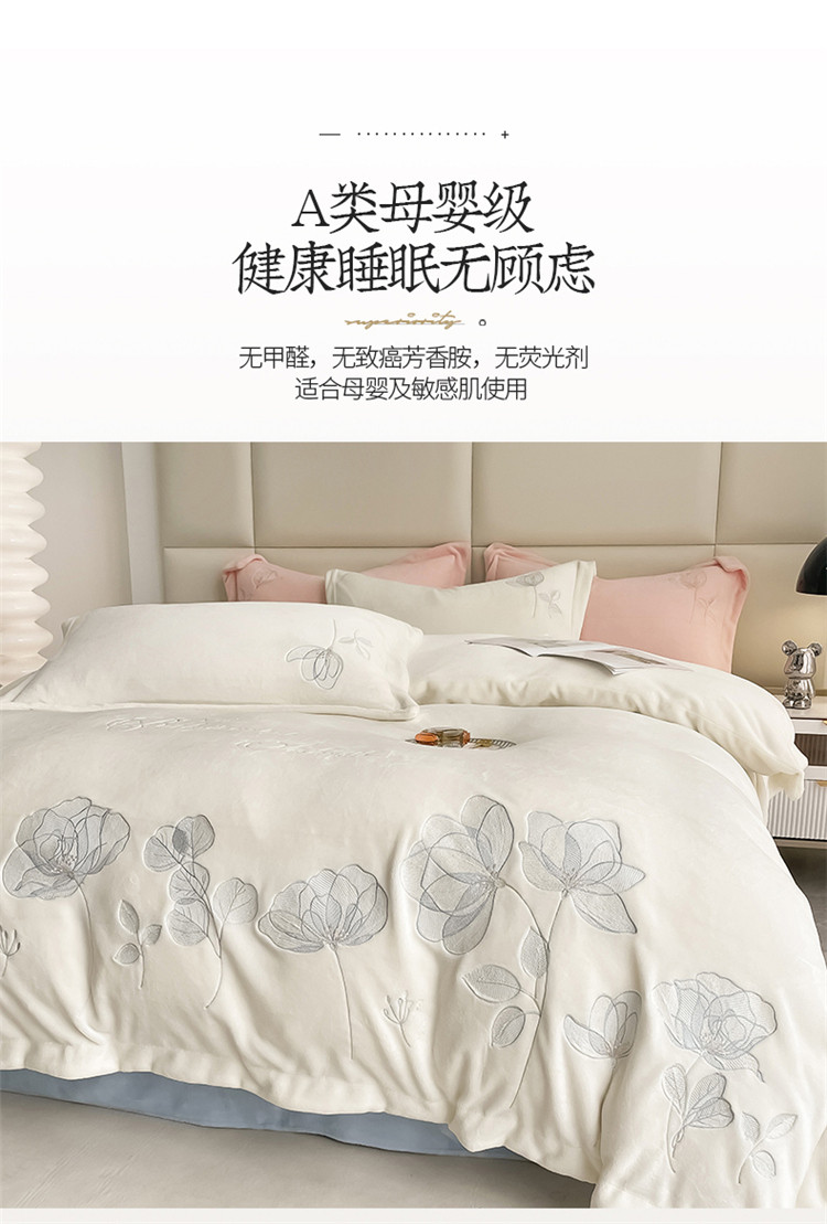 (总)懒猫家纺 2025新款亲肤舒适牛奶绒四件套-千寻花语系列,千寻花语-豆沙,千寻花语-玫紫,千寻花语-米咖,千寻花语-奶杏,千寻花语-雅绿,千寻花语-银灰