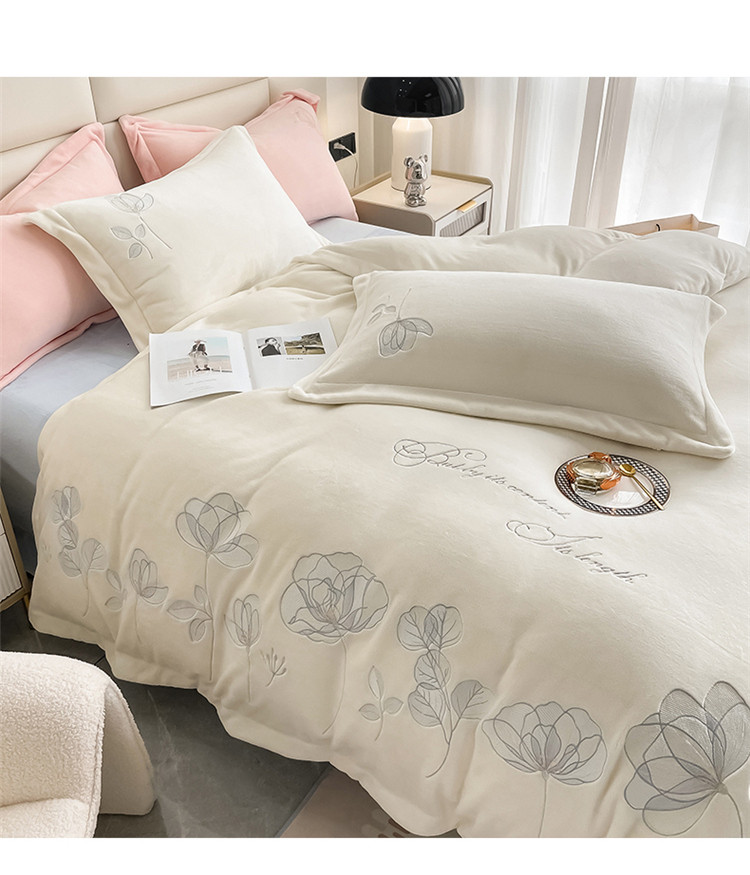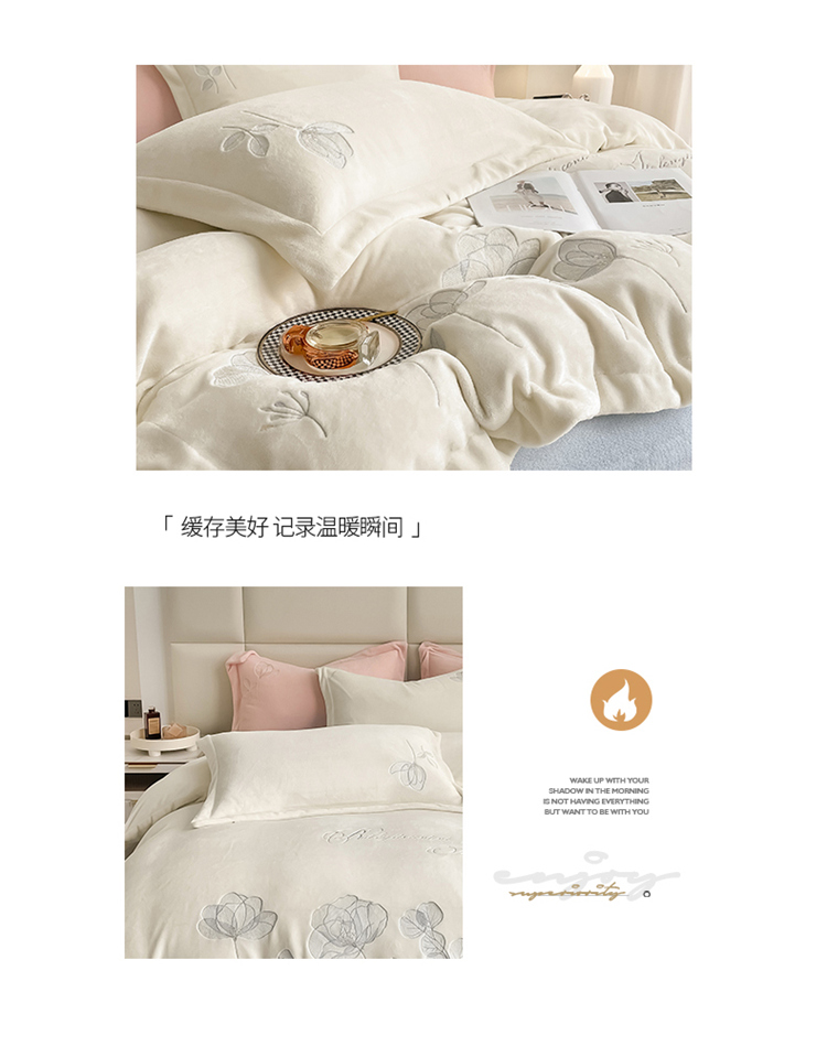 懒猫 2022新款牛奶绒四件套-花漾 花漾-米白