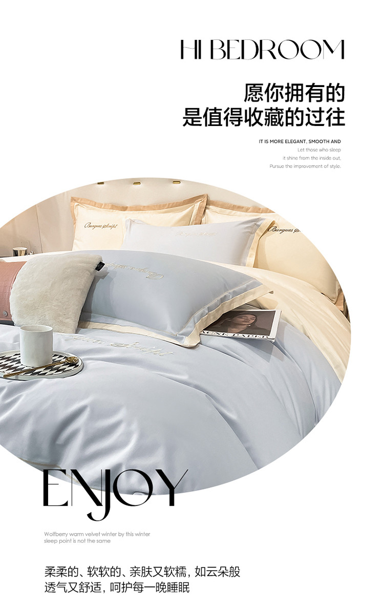 (总)金麦家纺 2025新款冰丝绣花四件套-心愿系列,心愿粉色,心愿燕麦奶,心愿天空蓝,心愿淡雅绿,心愿浅灰