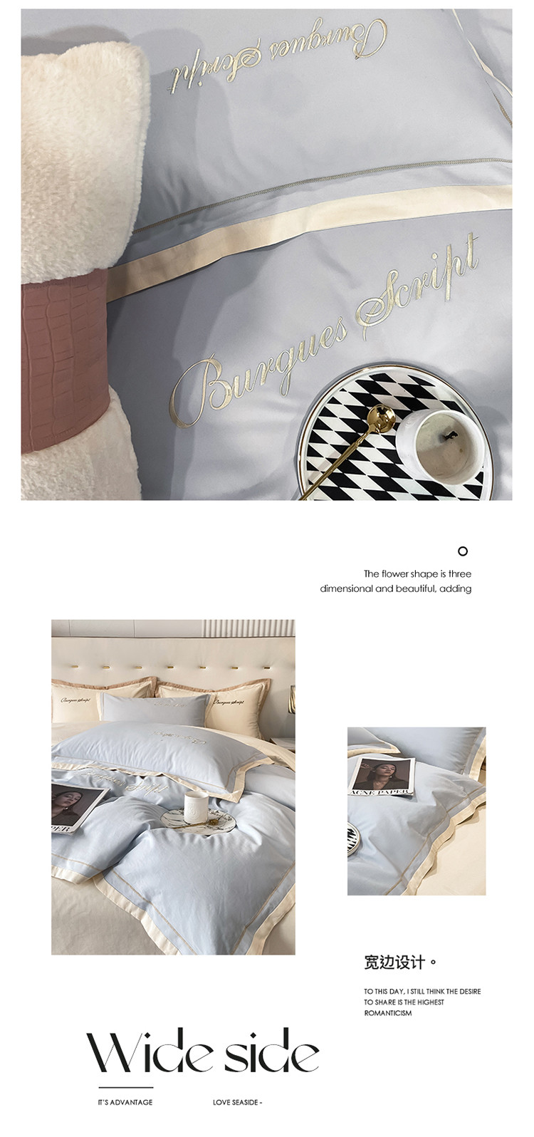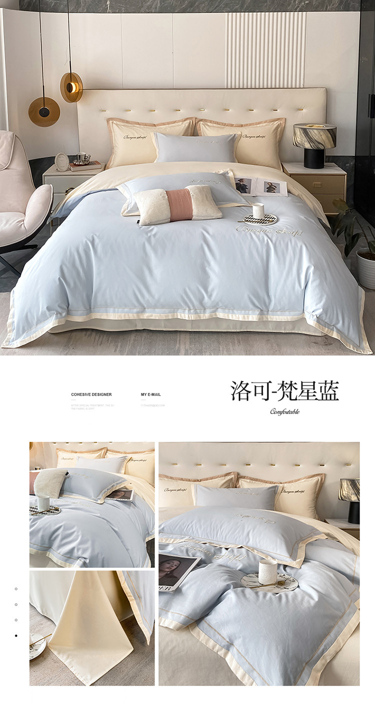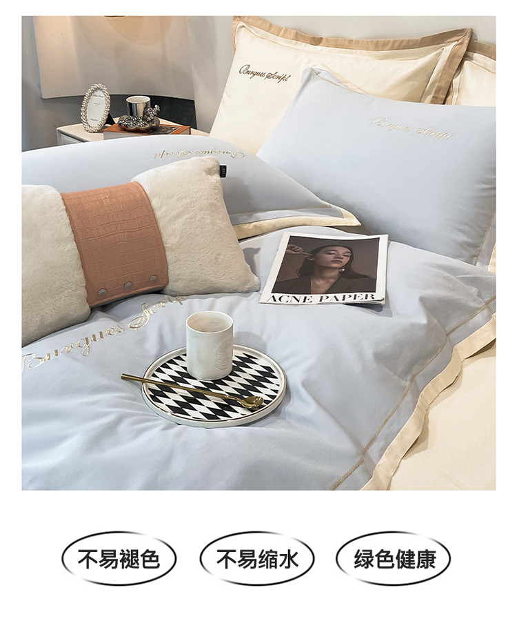 金麦 新款高支高密全棉加厚磨毛刺绣四件套—洛克系列 洛可-繁星蓝