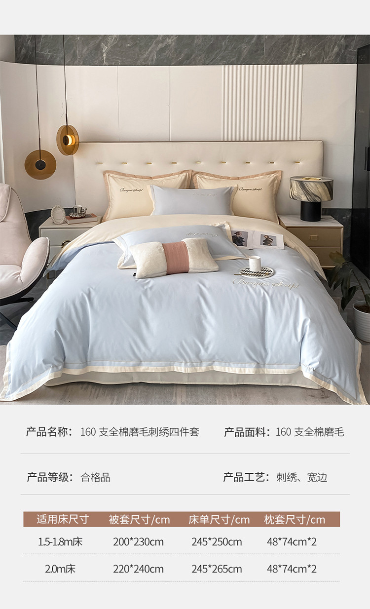 商品名称:金麦 新款高支高密全棉加厚磨毛刺绣四件套—洛克系列 洛可-繁星蓝