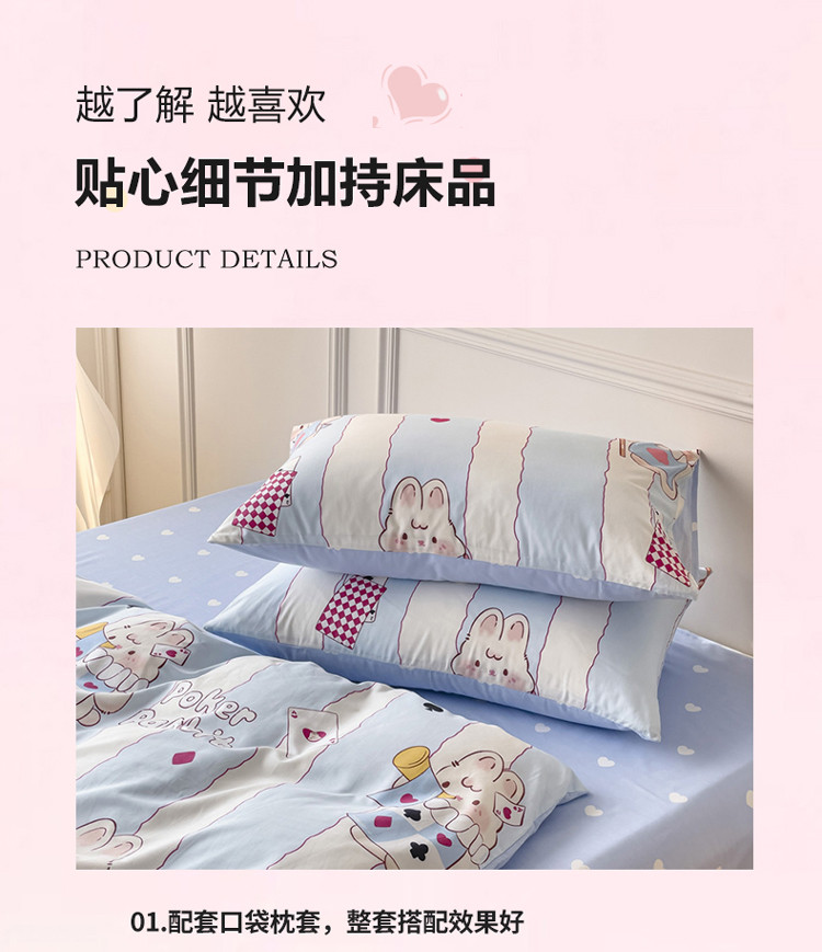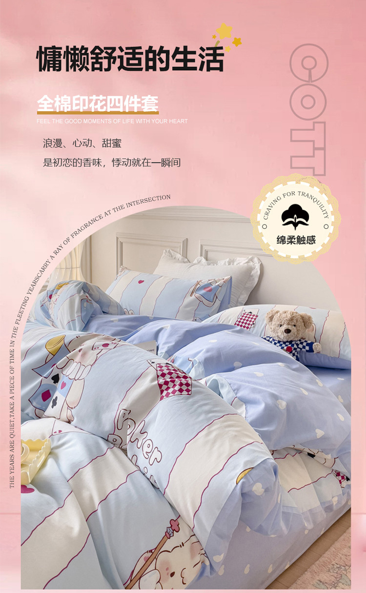 感遇2022新款全棉印花四件套系列 扑克小兔