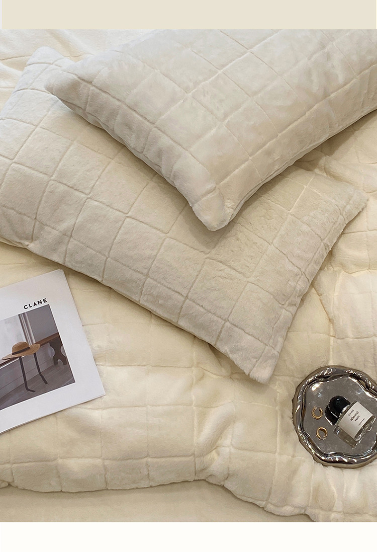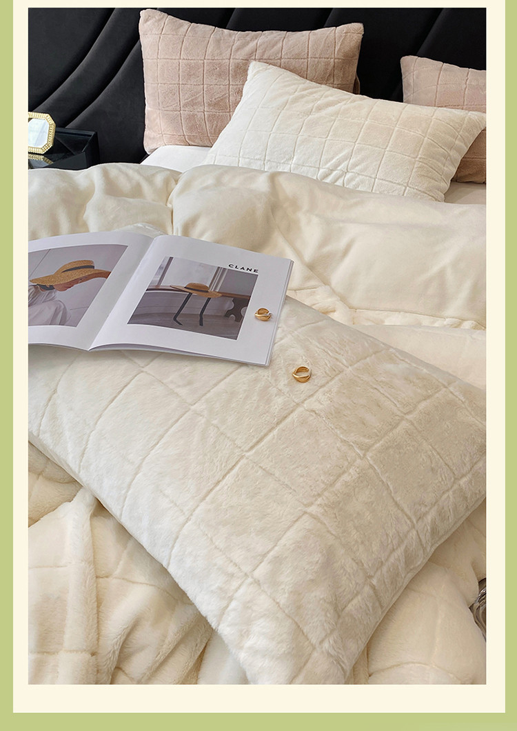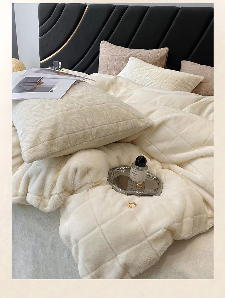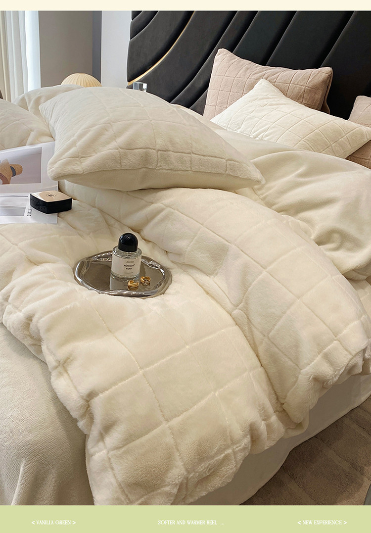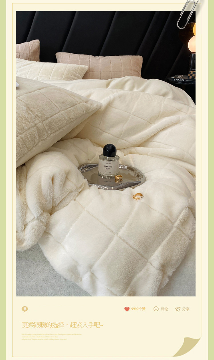 商品名称:名品优仓 2022新款獭兔绒四件套-莫尼卡 奶油白