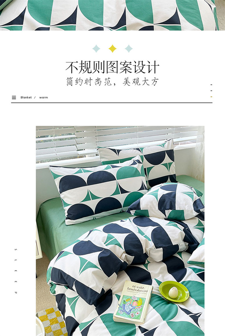 当前位置: 91家纺网 > 商品网购 > 床品套件 > 四件套 > 全棉普通四件套 > 麦伦家居 2023新款全棉简约个性北欧系列四件套-第 一组 大西洋绿