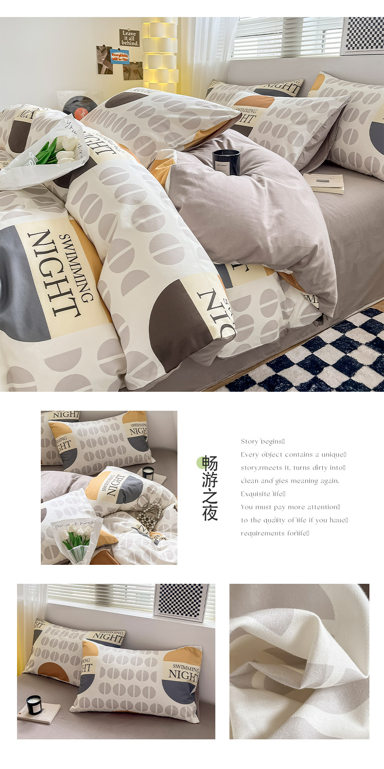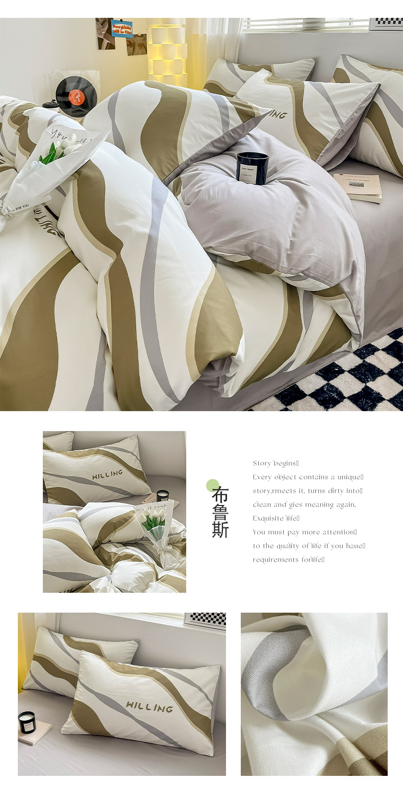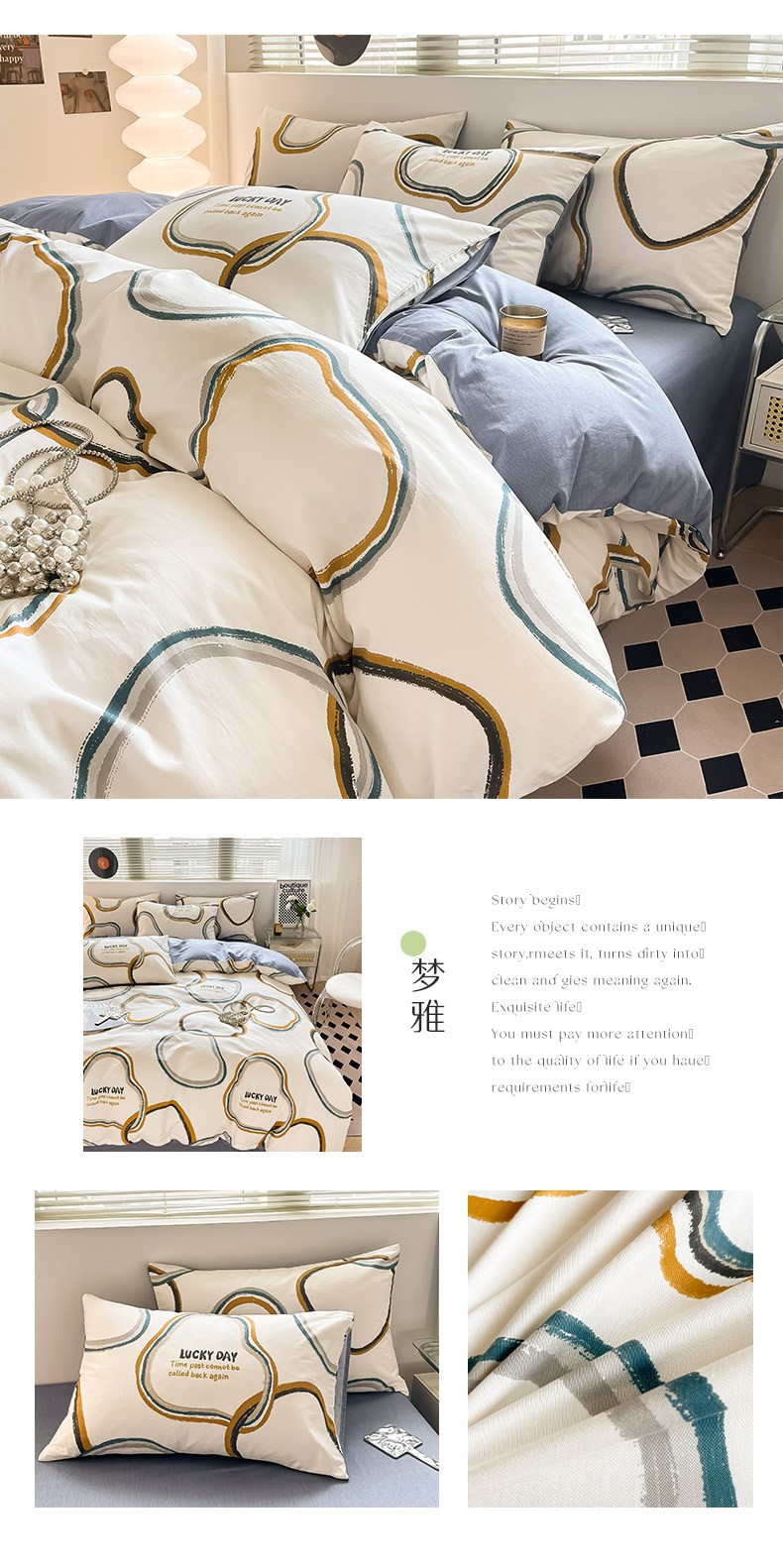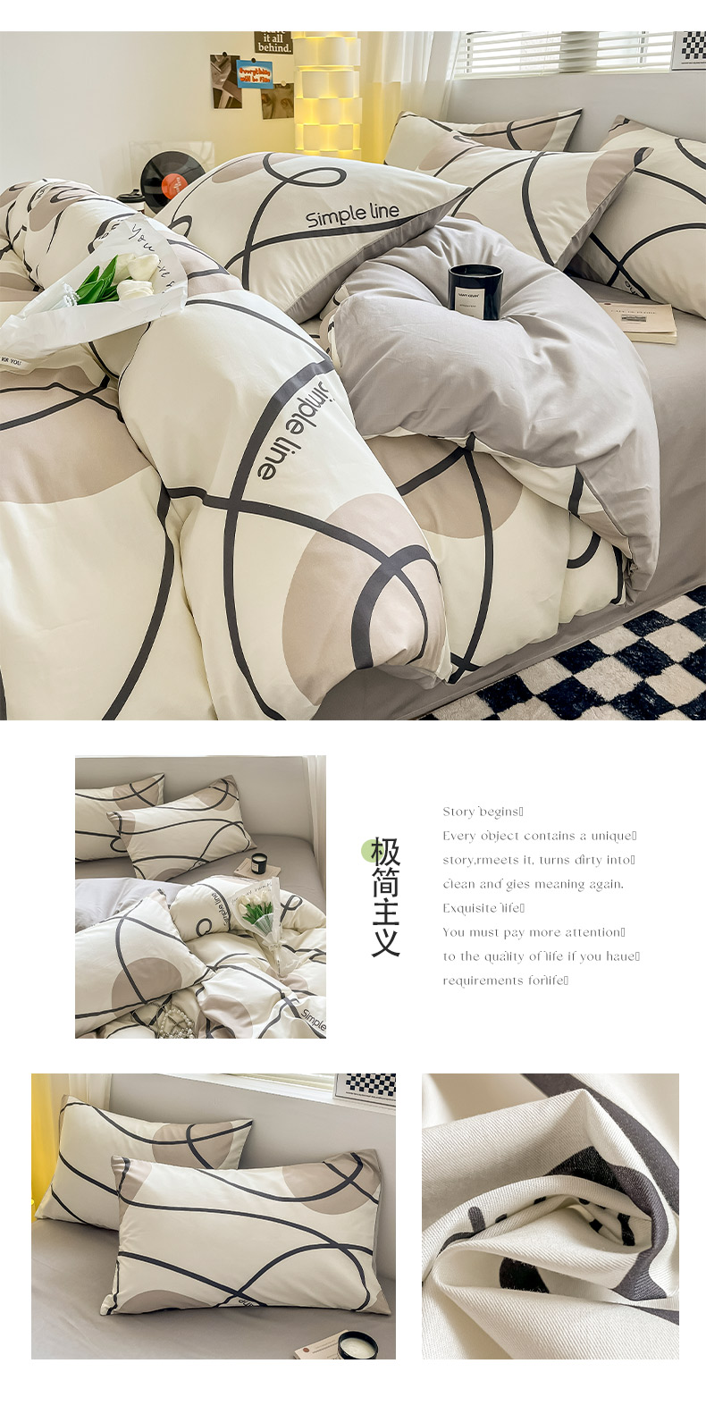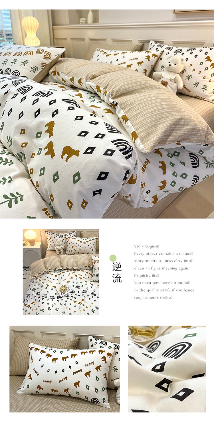 商品名称:(总)小懒猪 2024新款春夏全棉北欧简约风系列四件套-风格三