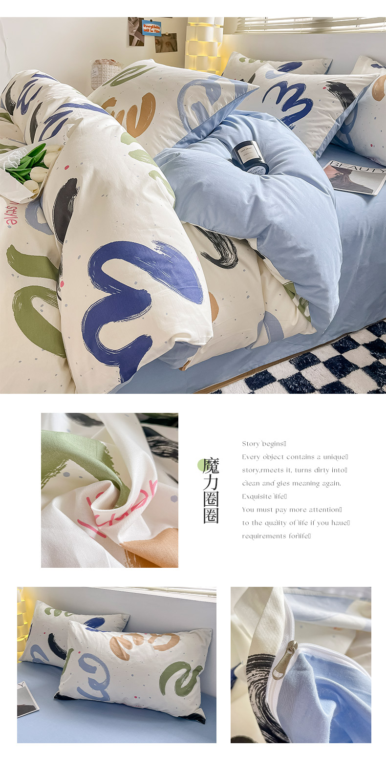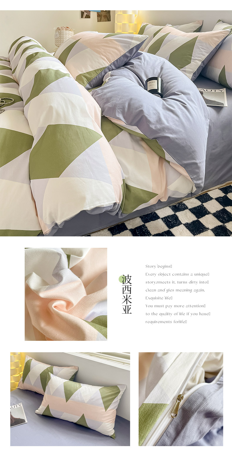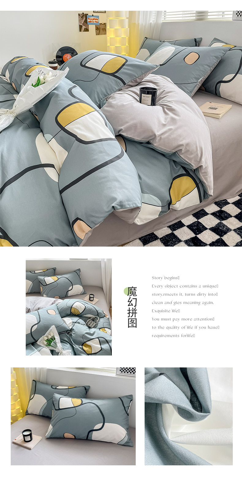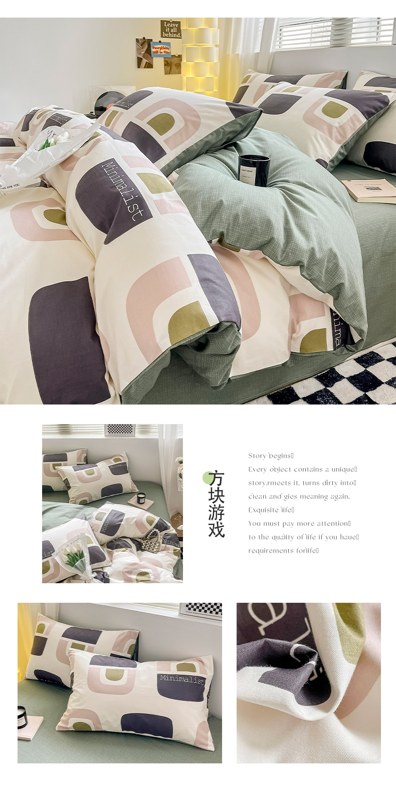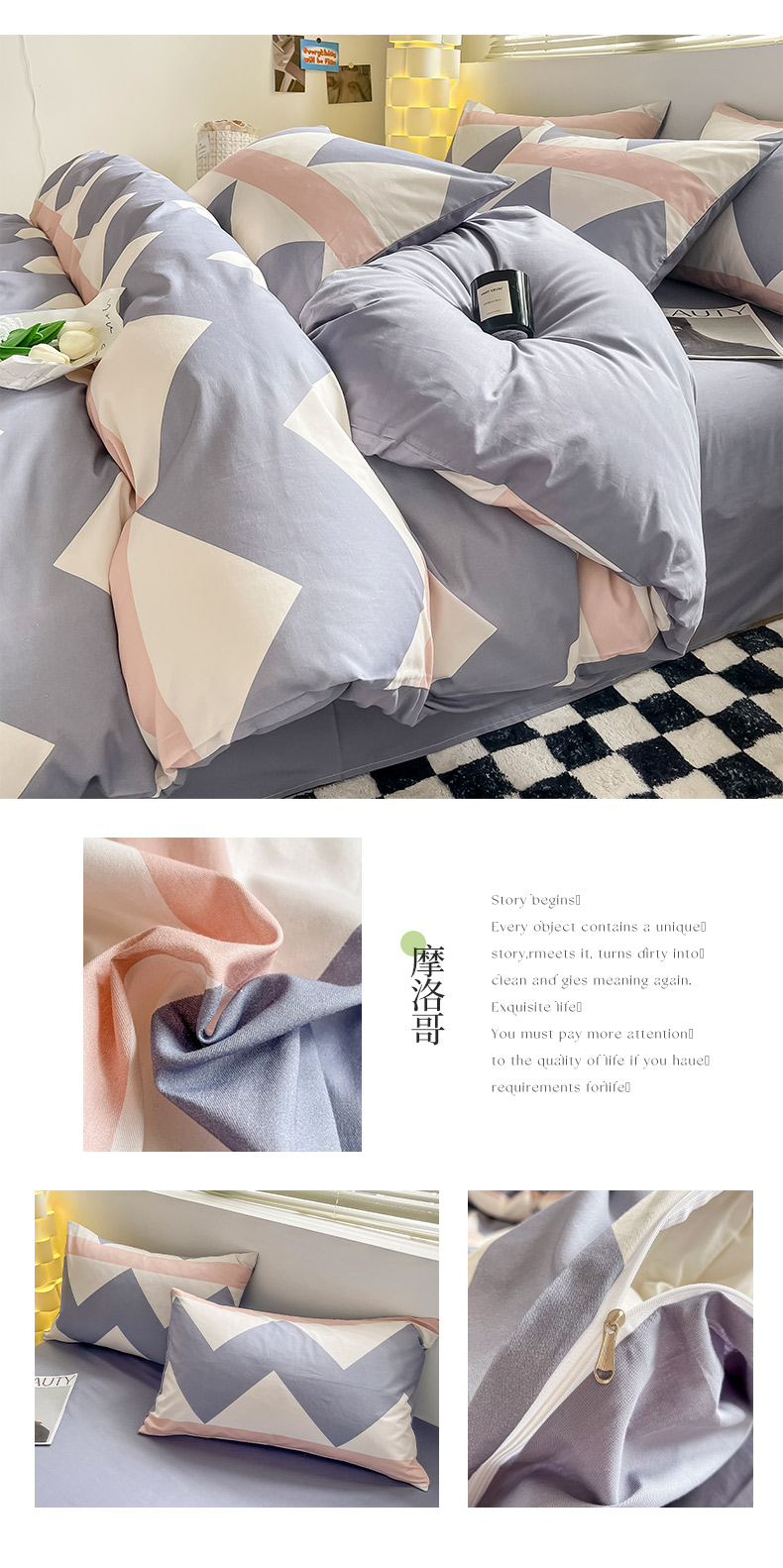 商品名称:(总)小懒猪 2024新款春夏全棉北欧简约风系列四件套-风格三