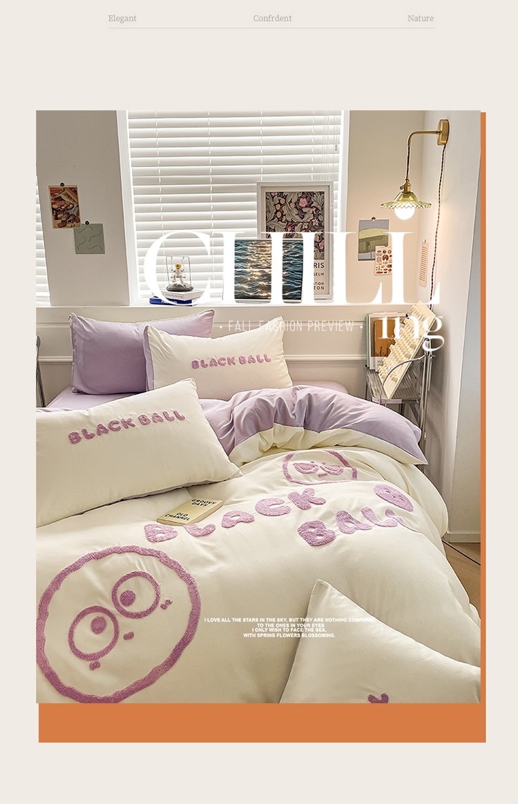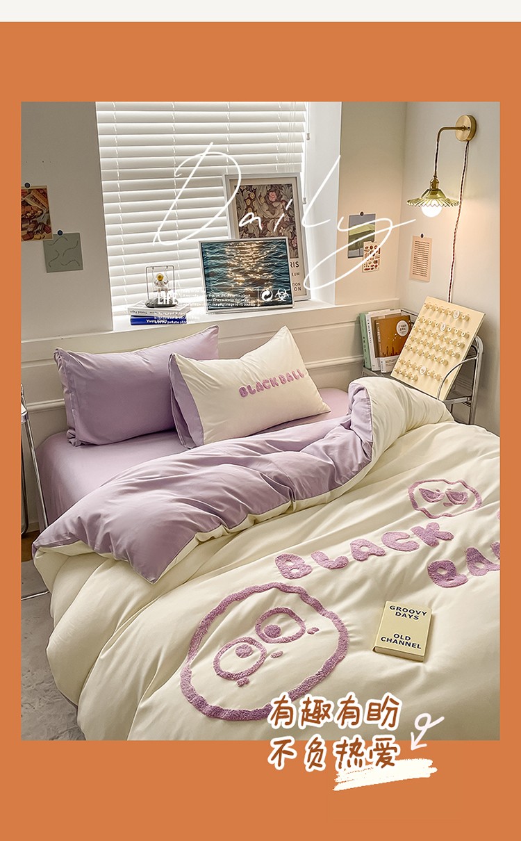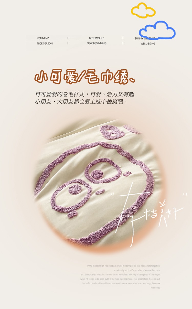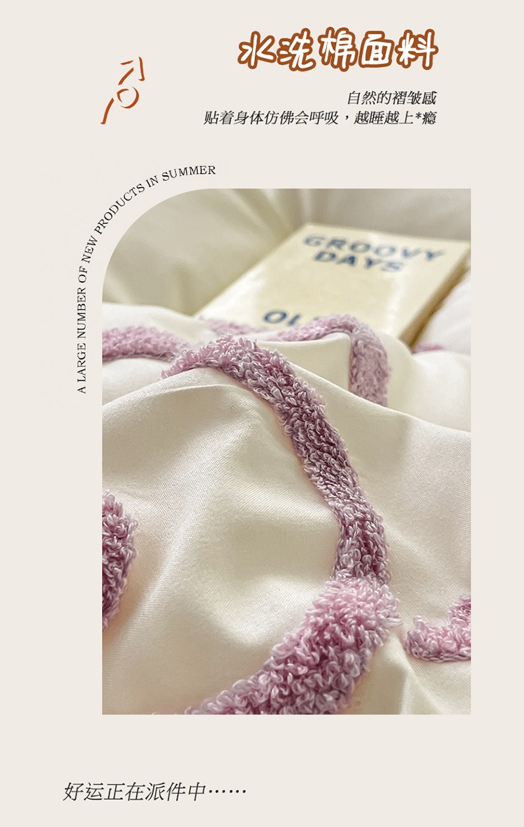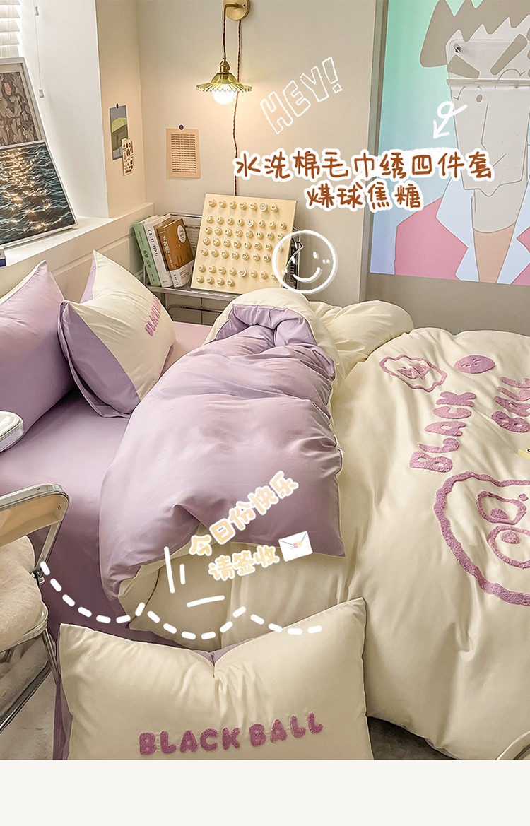 当前位置: 91家纺网 > 商品网购 > 床品套件 > 四件套 > 水洗棉四件套 > 眠帛家纺 2023新款水洗棉毛巾绣四件套煤球系列 煤球浅紫