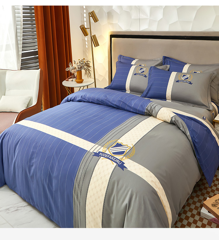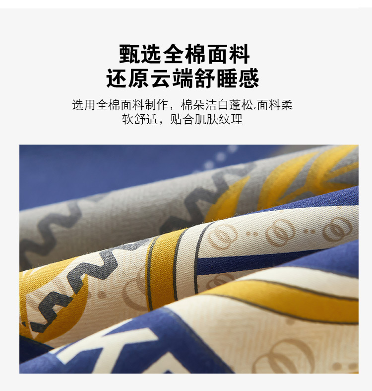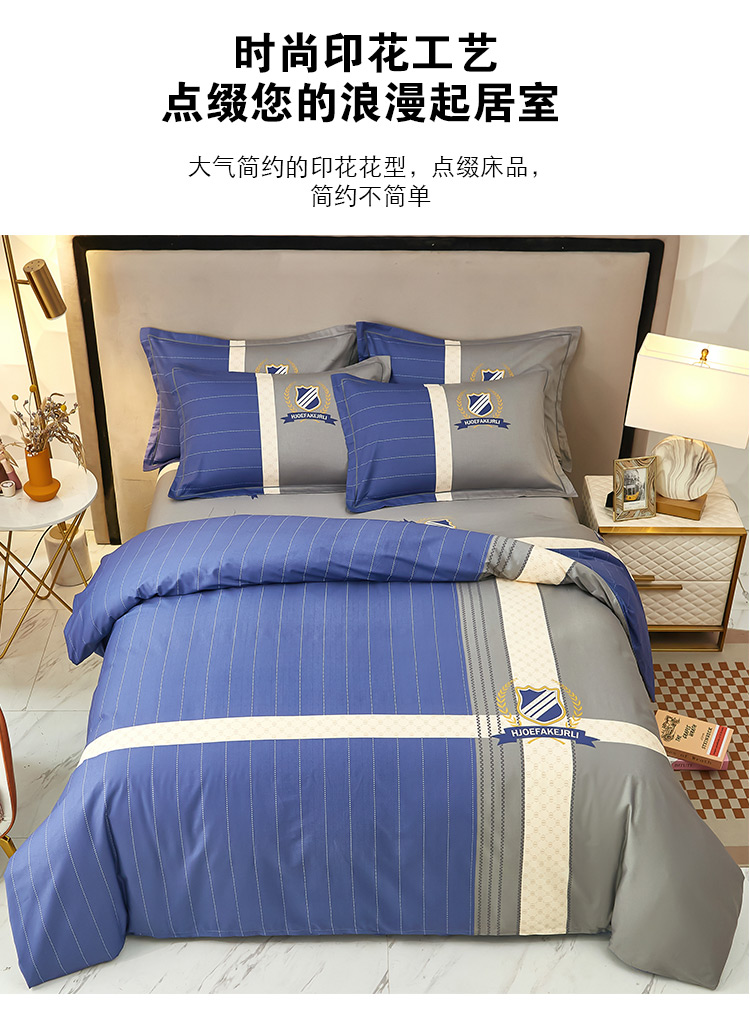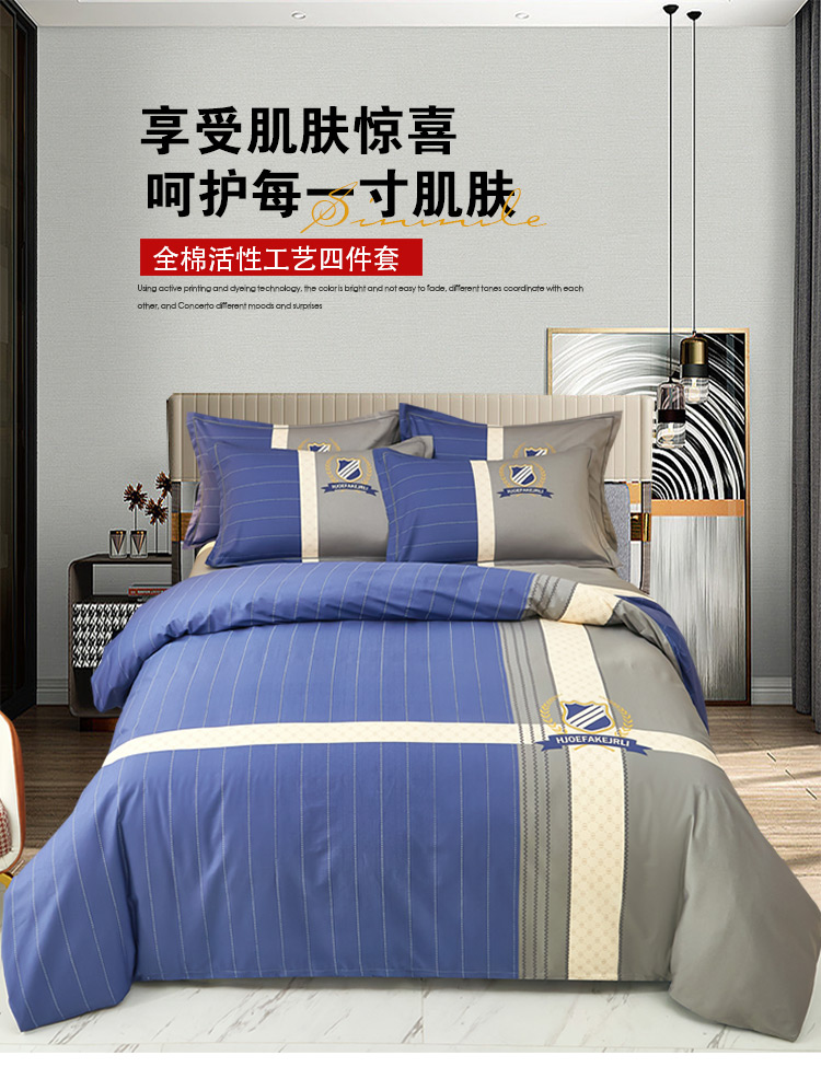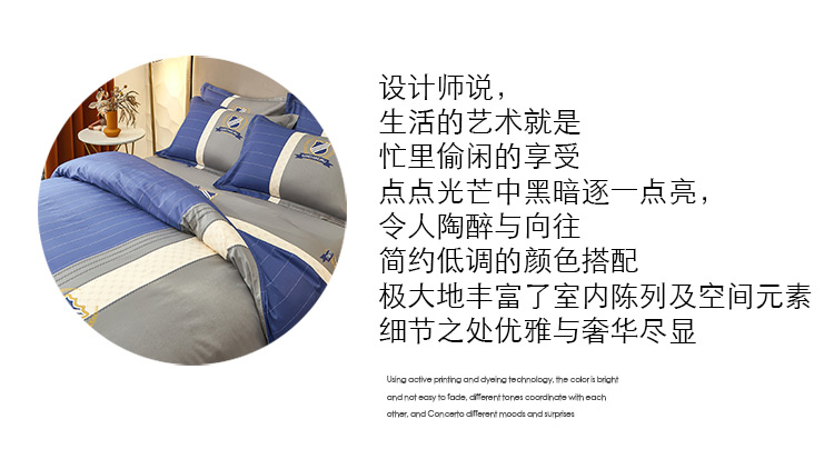 商品名称:雲归梦2023新款13372全棉活性大版印花简约居家四件套 伯爵蓝