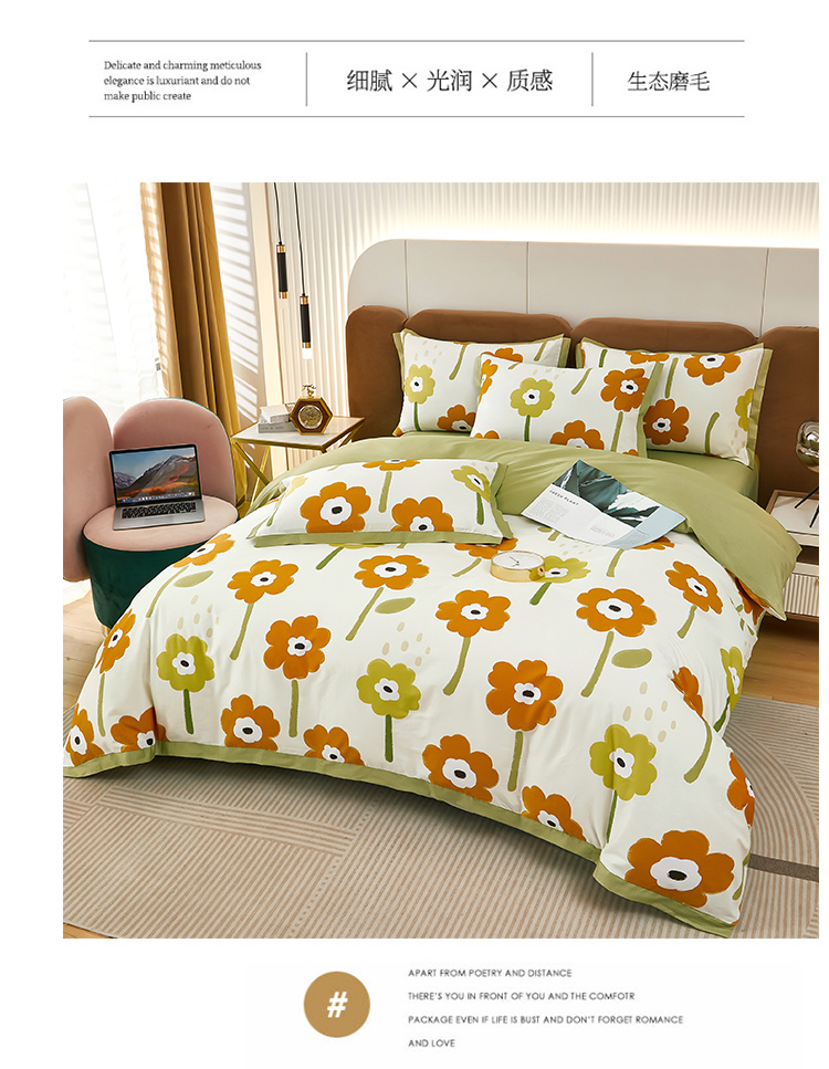 商品名称:雲归梦 新款13372全棉活性工艺款小版印花四件套 拉斐尔桔