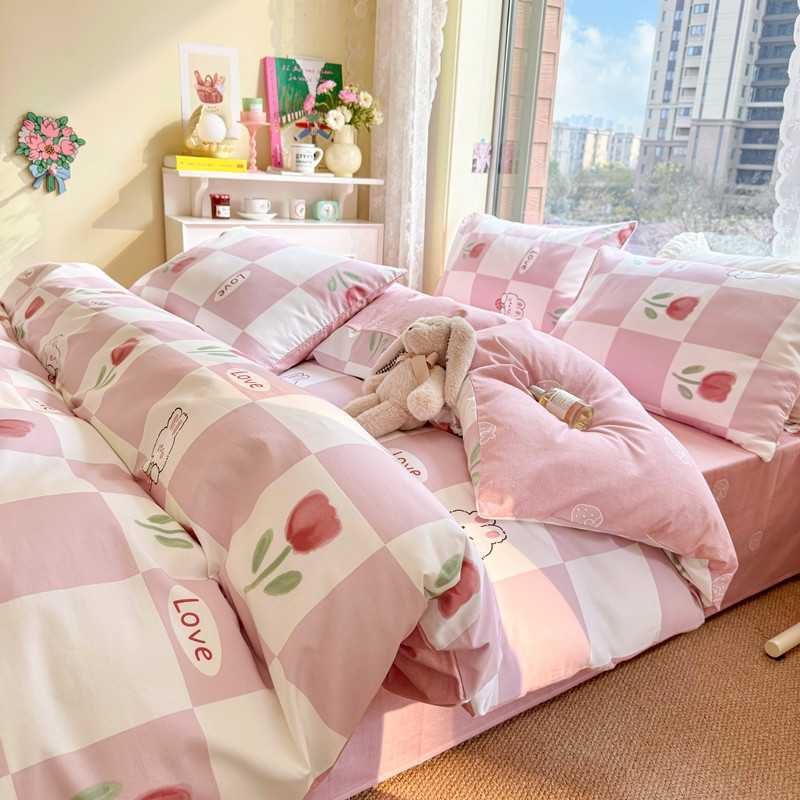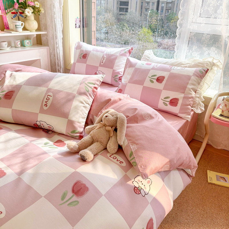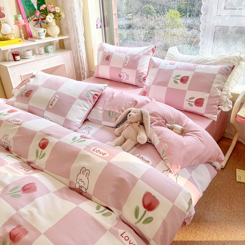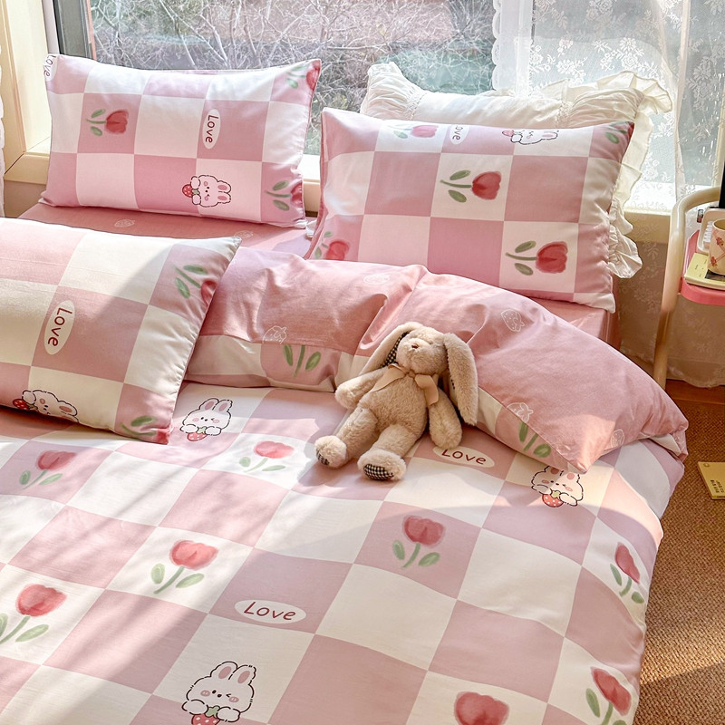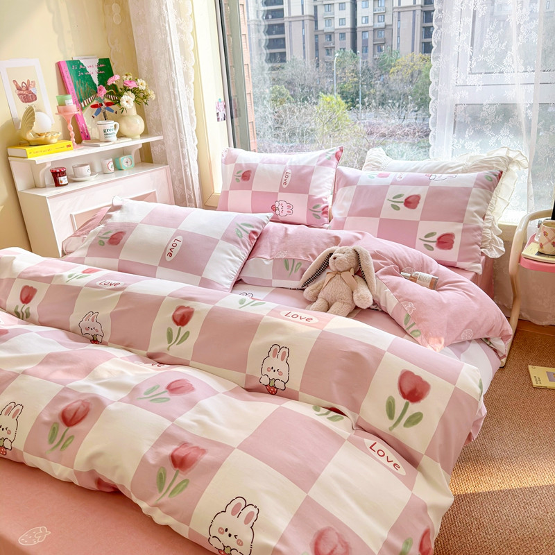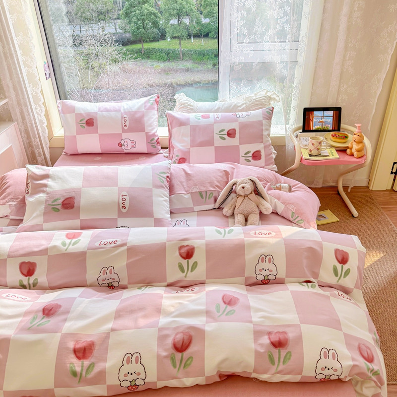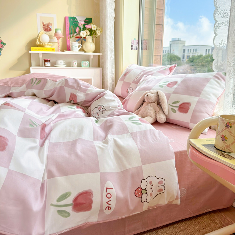 沐辰 2023新款13372全棉印花四件套-萌趣系列 郁金香小兔