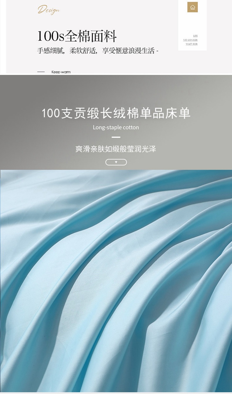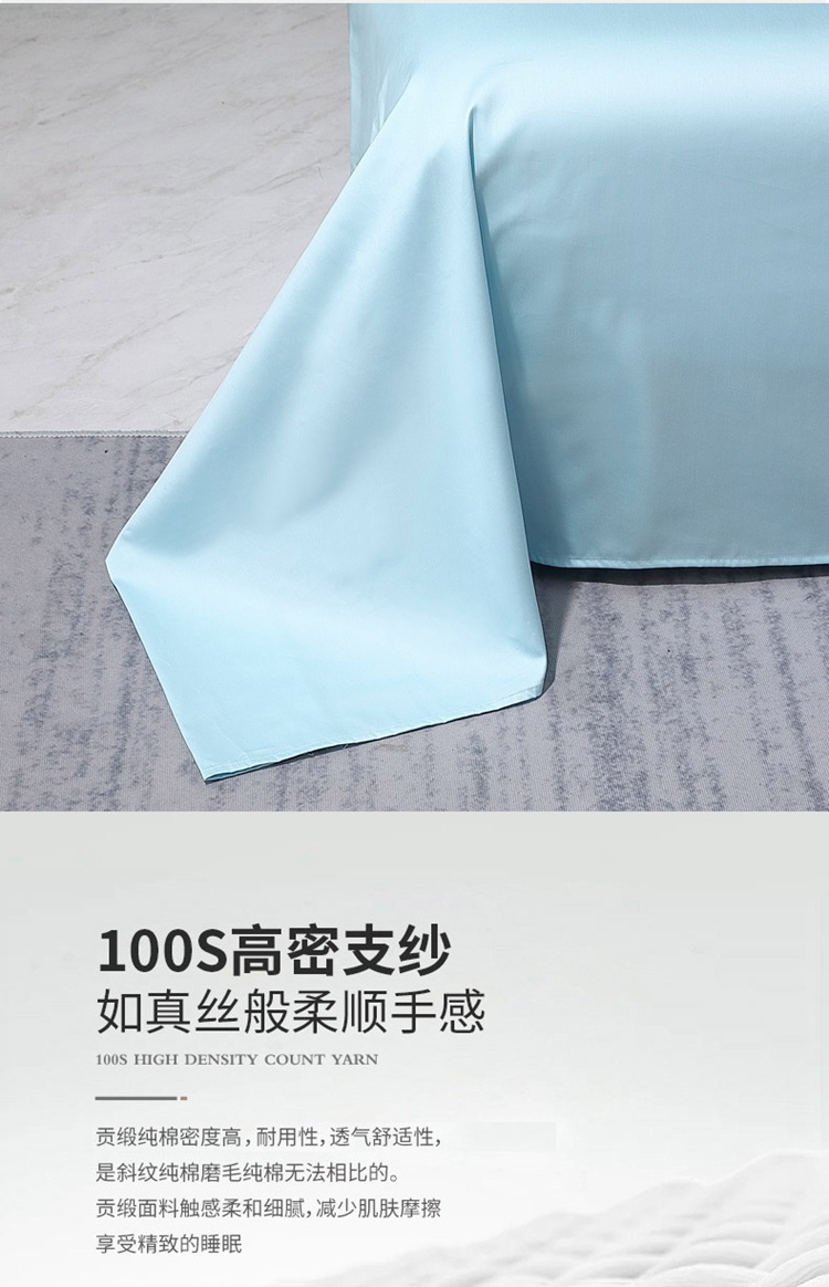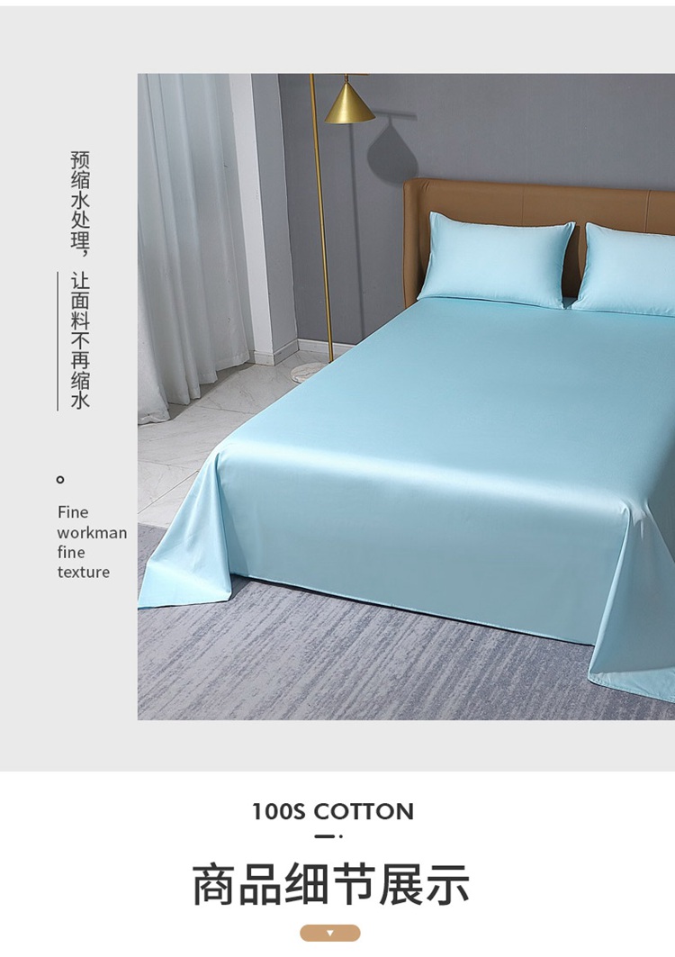 商品名称:晶缦家纺2023新款纯棉50支双股贡缎长绒棉纯色单品床单 纯沐-浅天蓝