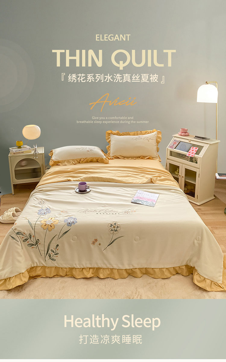 AB家纺 2023新品水洗真丝夏被 伊甸园奶牛黄