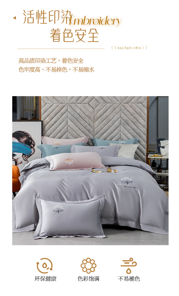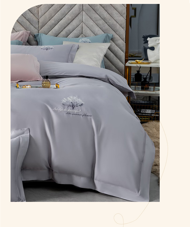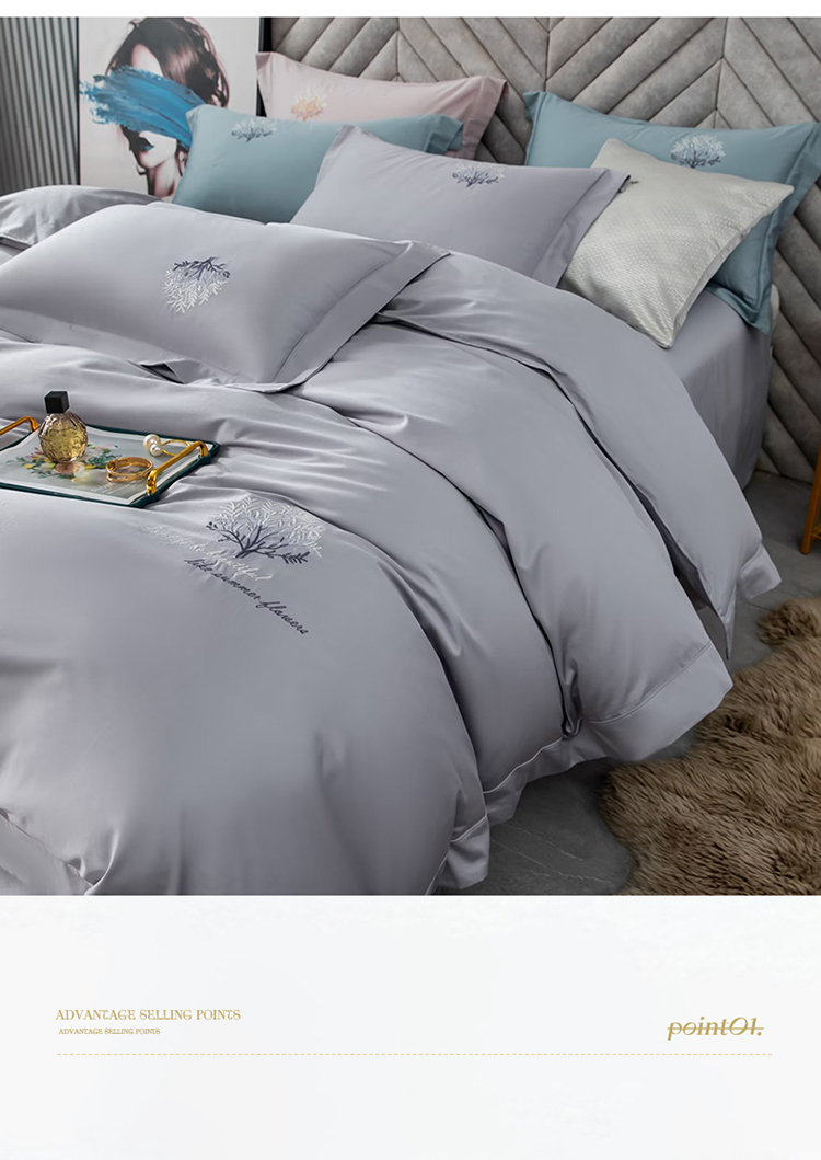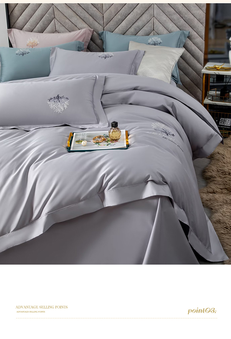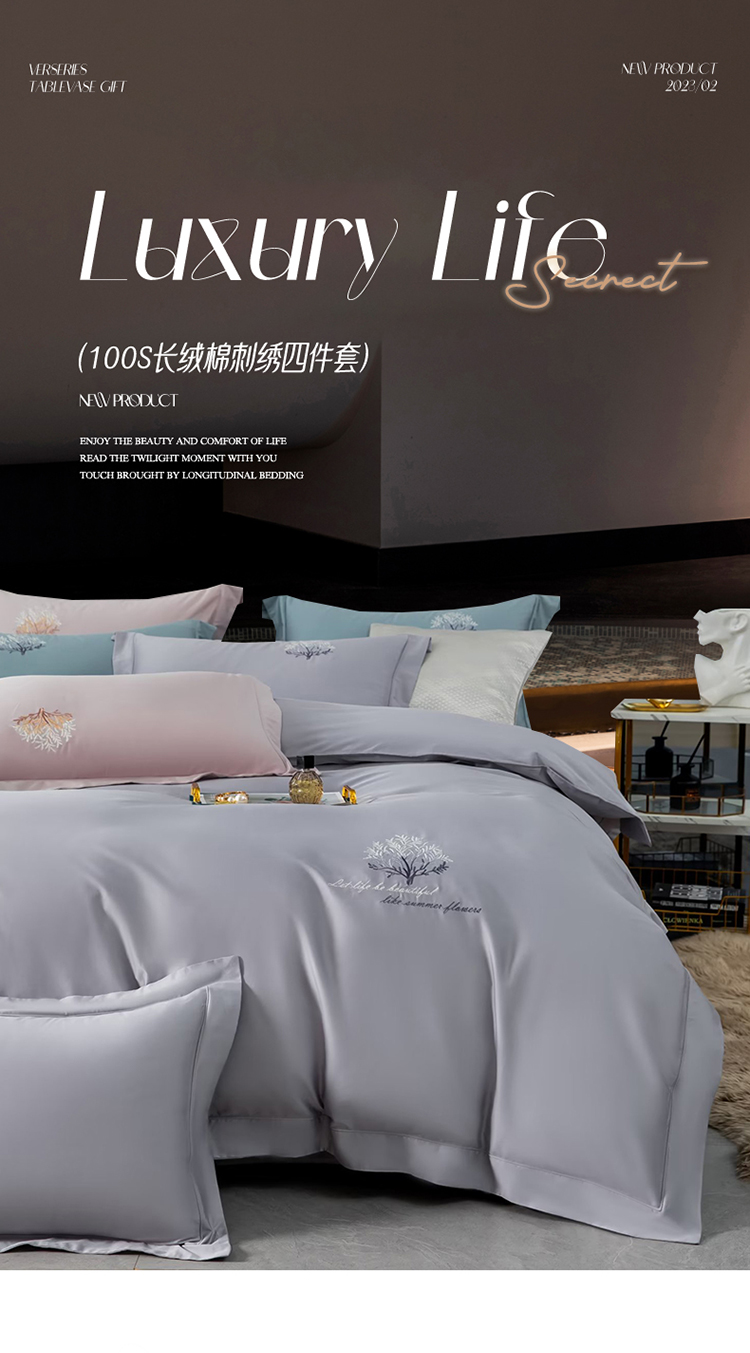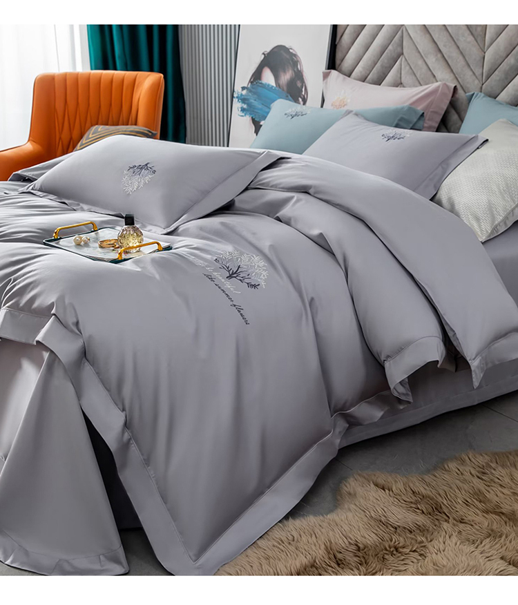 商品名称:名品优仓 2023新款高支高密长绒棉刺绣款四件套-一树花开 一树花开-紫