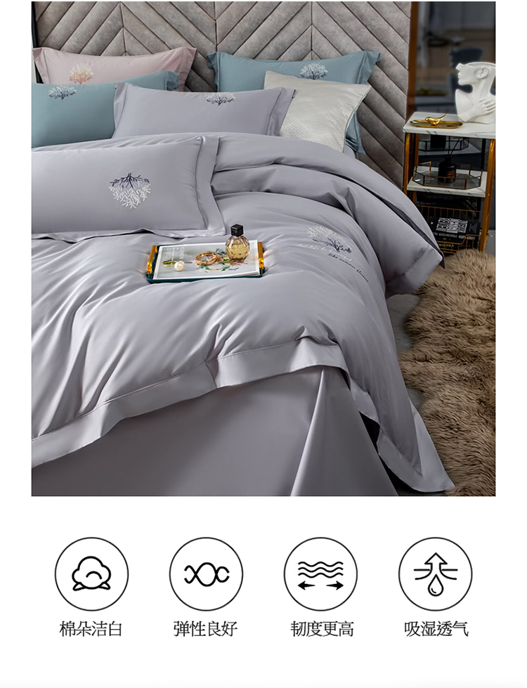 名品优仓 2023新款高支高密长绒棉刺绣款四件套-一树花开 一树花开-紫