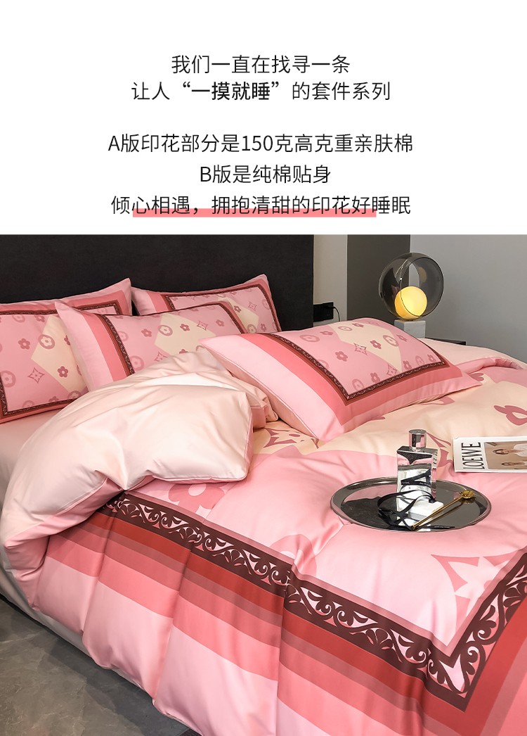 当前位置: 91家纺网 > 商品网购 > 床品套件 > 四件套 > 全棉普通四件套 > 色鬼布艺 2023新款13376纯棉潮牌床单床笠款四件套 轻奢粉色老花