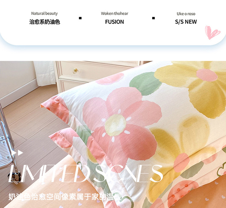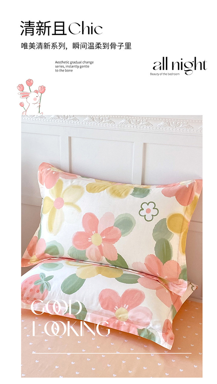 帛织澜 2025新款全棉喷气12868系列纯棉枕套 花季物语