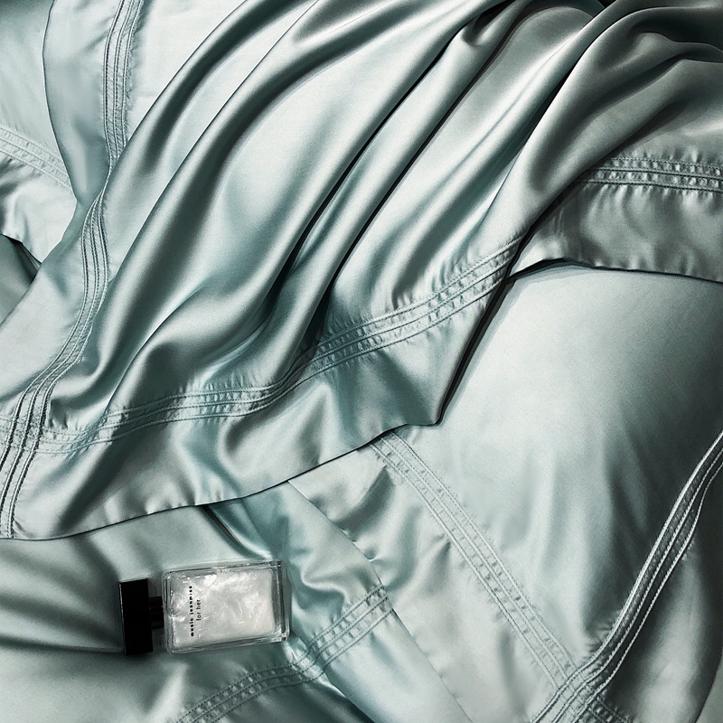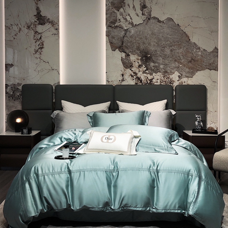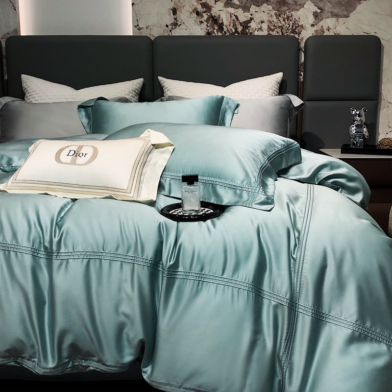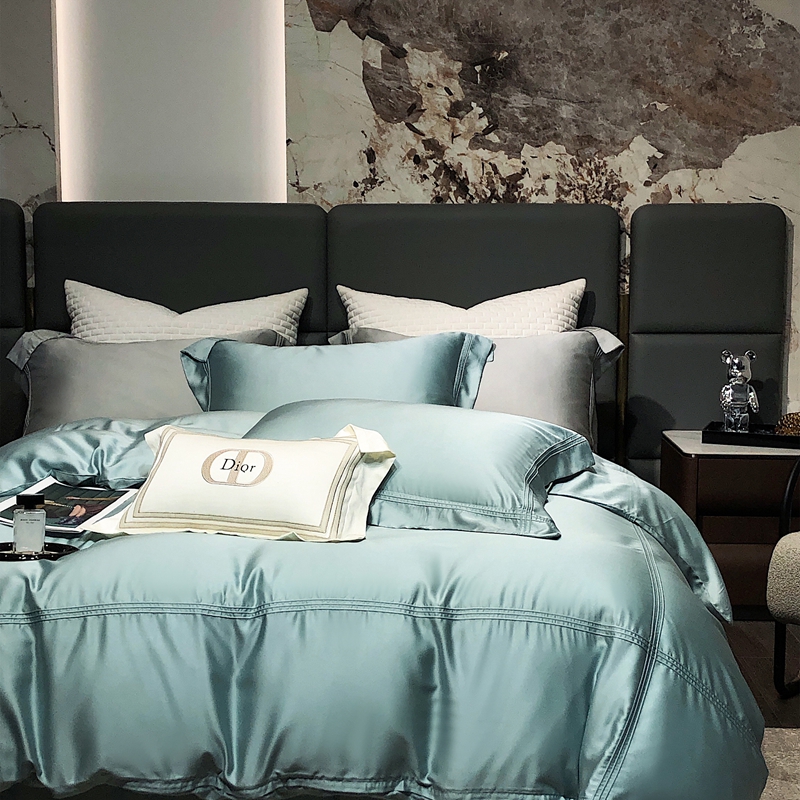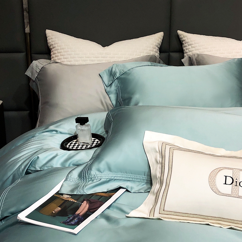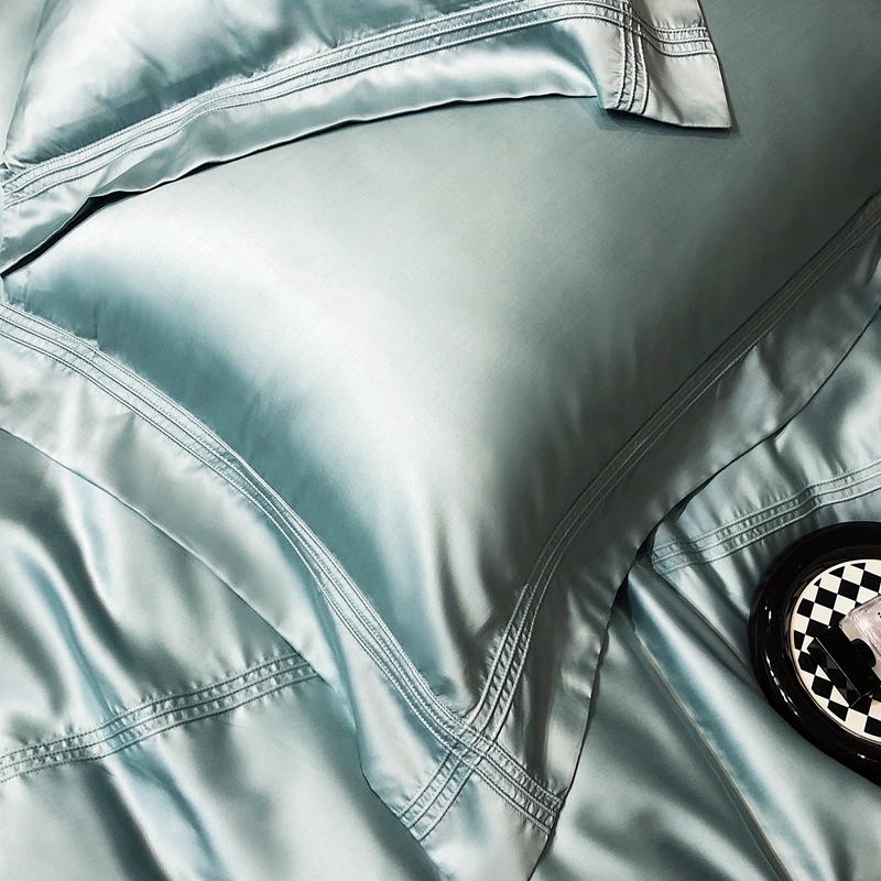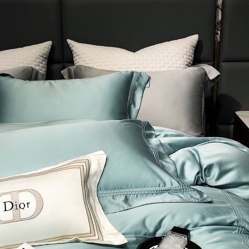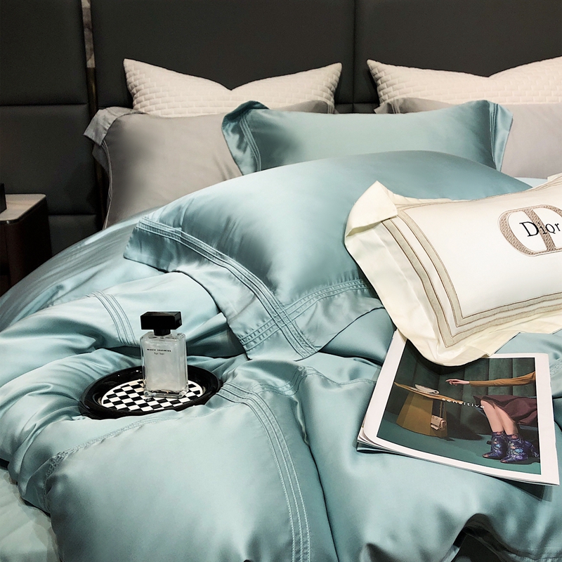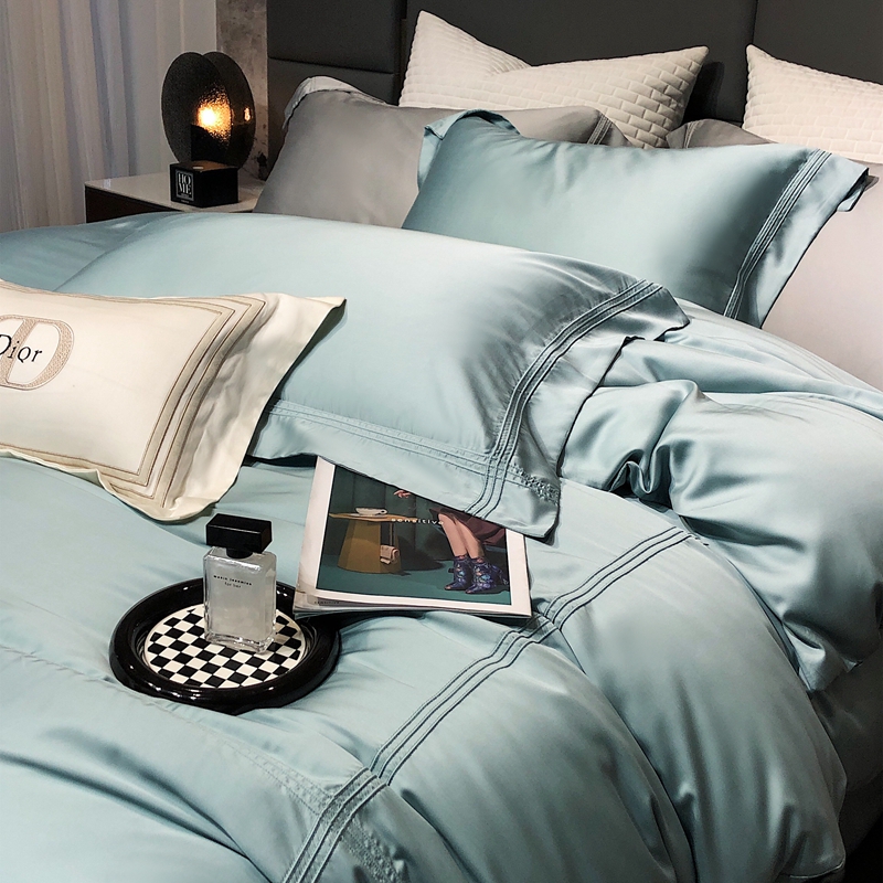 涞澳 2023新款60支纯色天丝压线系列四件套--云汐系列 云汐-清凉蓝