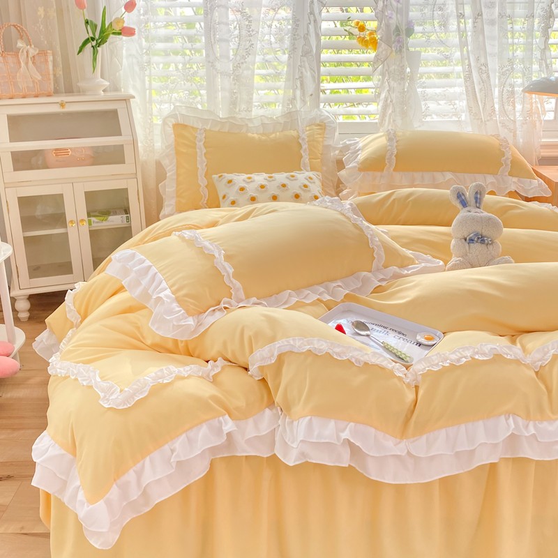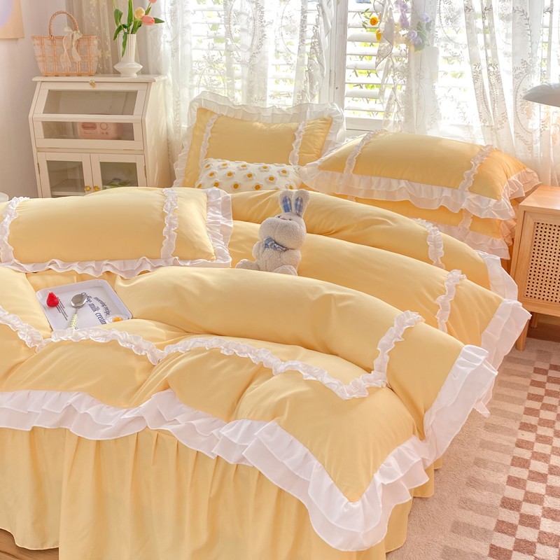 当前位置: 91家纺网 > 商品网购 > 床品套件 > 四件套 > 化纤普通四件套 > 逸尚阁 2023新款 双层花边系列四件套-唯美 唯美-温馨黄