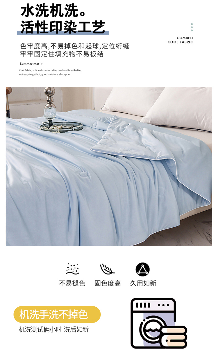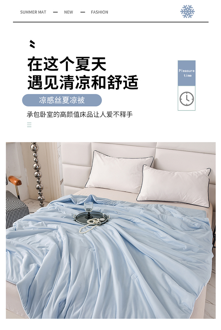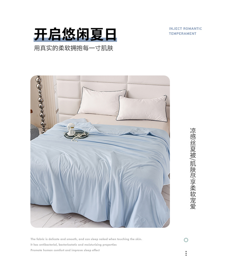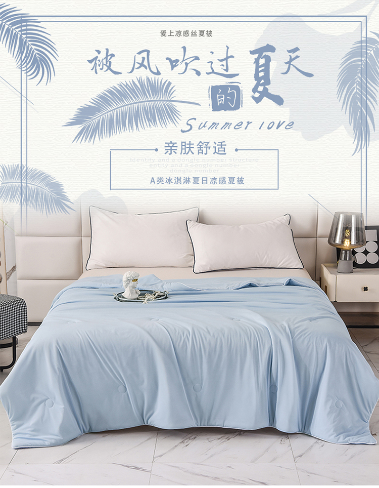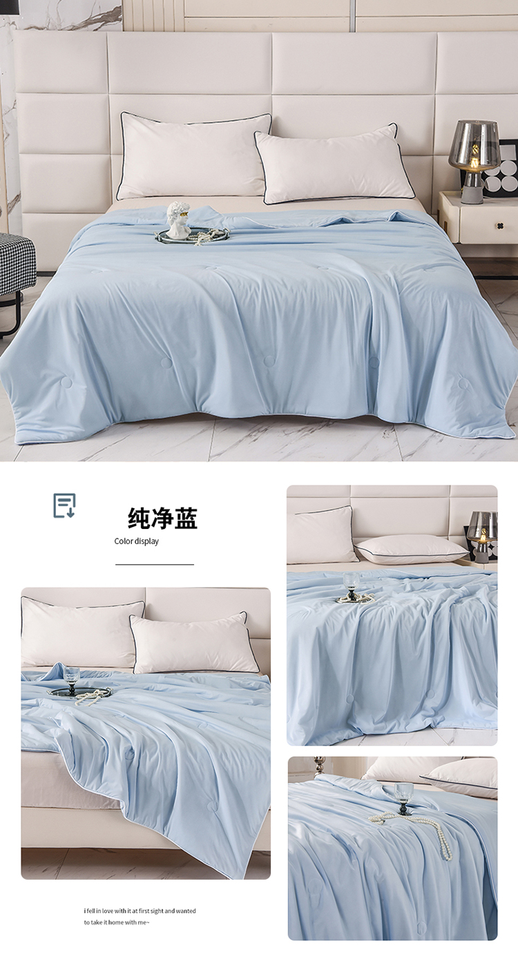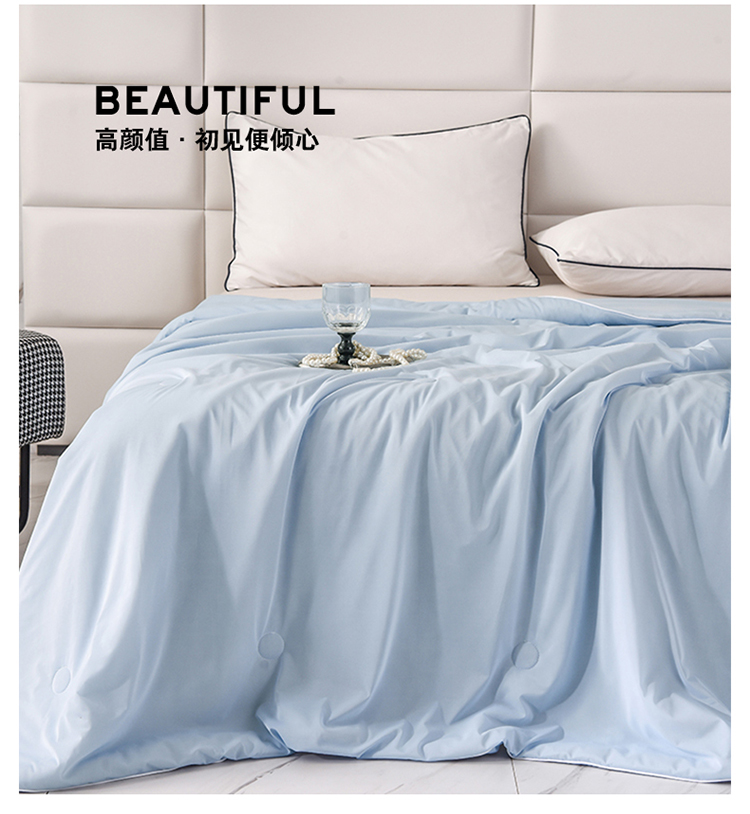 恩和家纺 2025新款A类凉感丝冰激凌夏被 纯净蓝