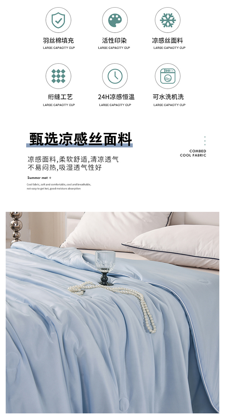 商品名称:恩和家纺 2025新款A类凉感丝冰激凌夏被 纯净蓝