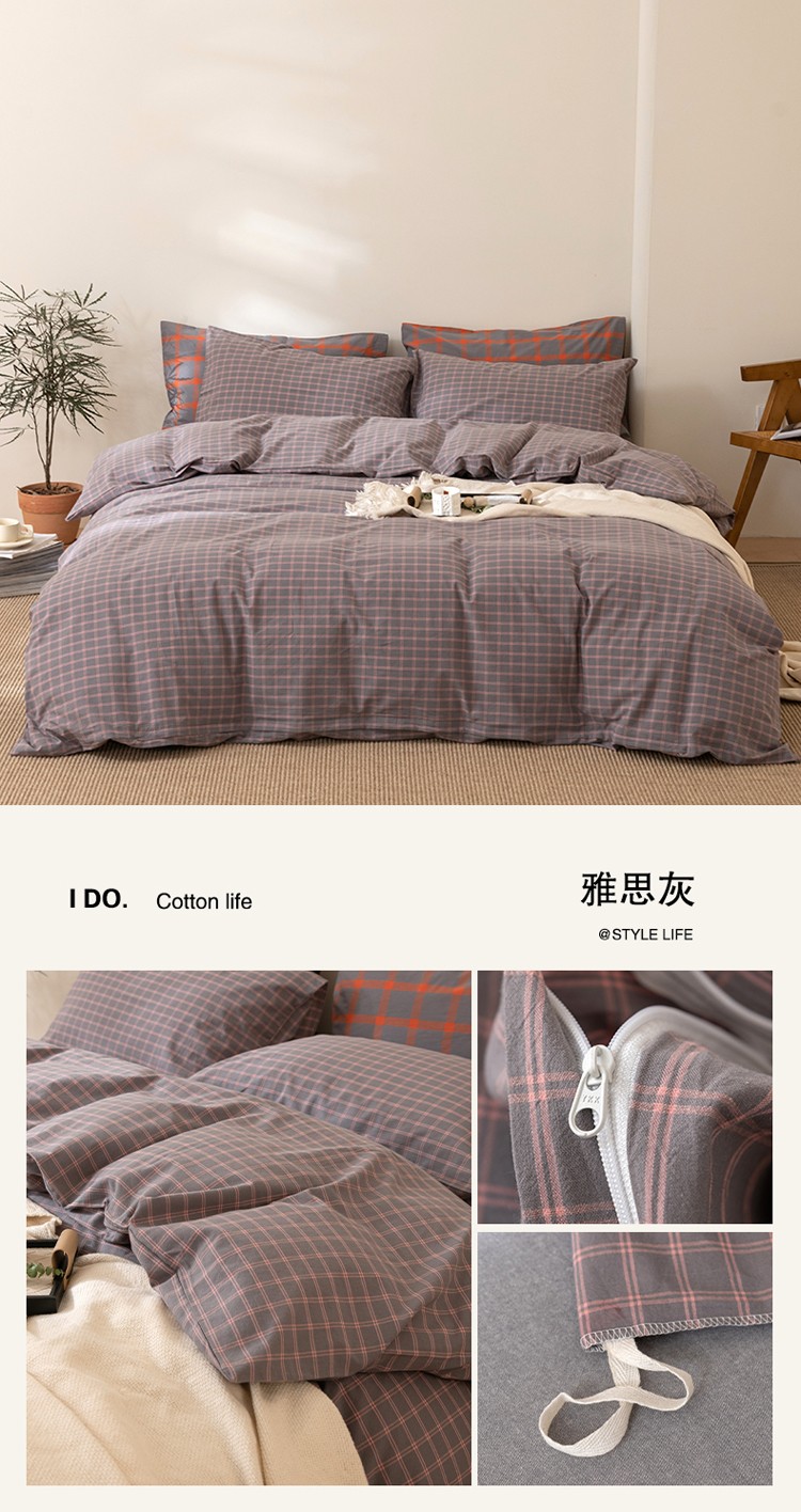 (总)棉邦 2023新款A类全棉色织水洗棉四件套,灰密条,极黑细条,橘红小格,洛桑粉,洛桑桔,梦想橙,梦想桔,米密条,雅思粉,雅思灰,雅思桔,中古卡其