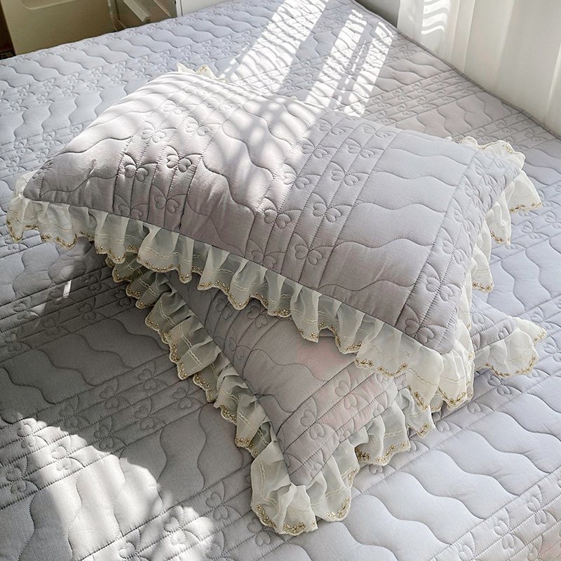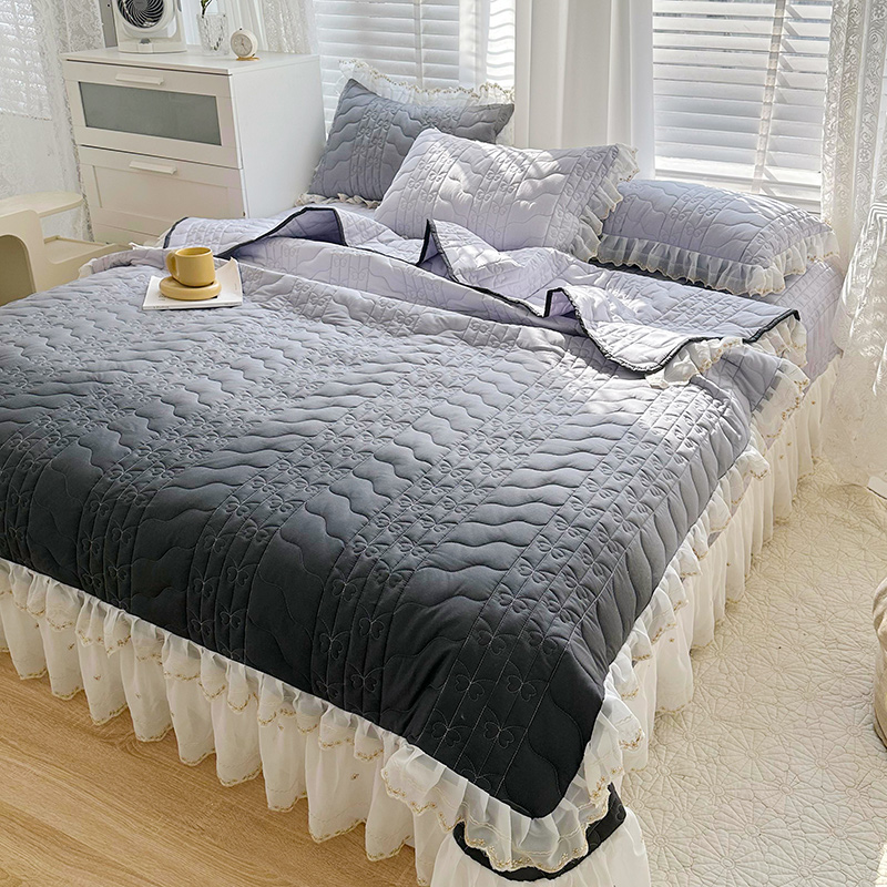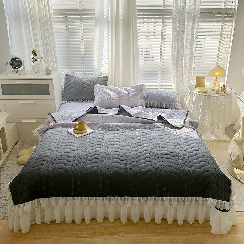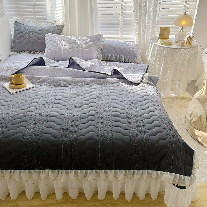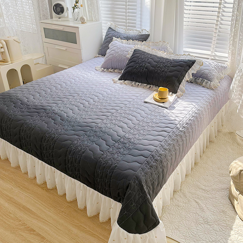 商品名称:宜凡 2023新款全棉蕾丝刺绣床盖三件套 黛灰
