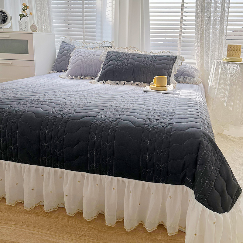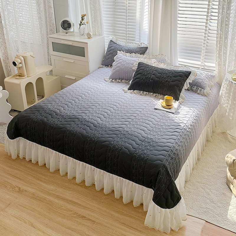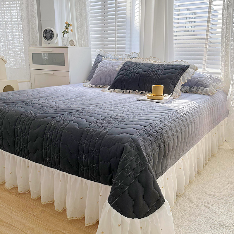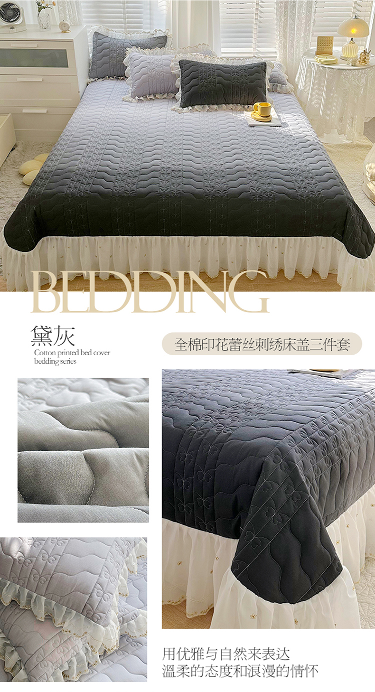 宜凡 2023新款全棉蕾丝刺绣床盖三件套 黛灰