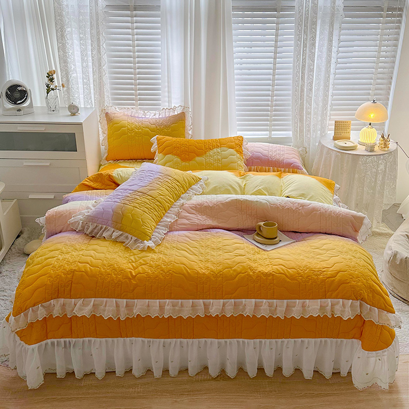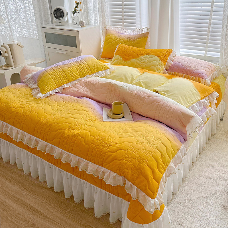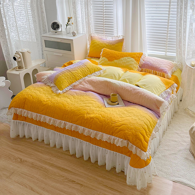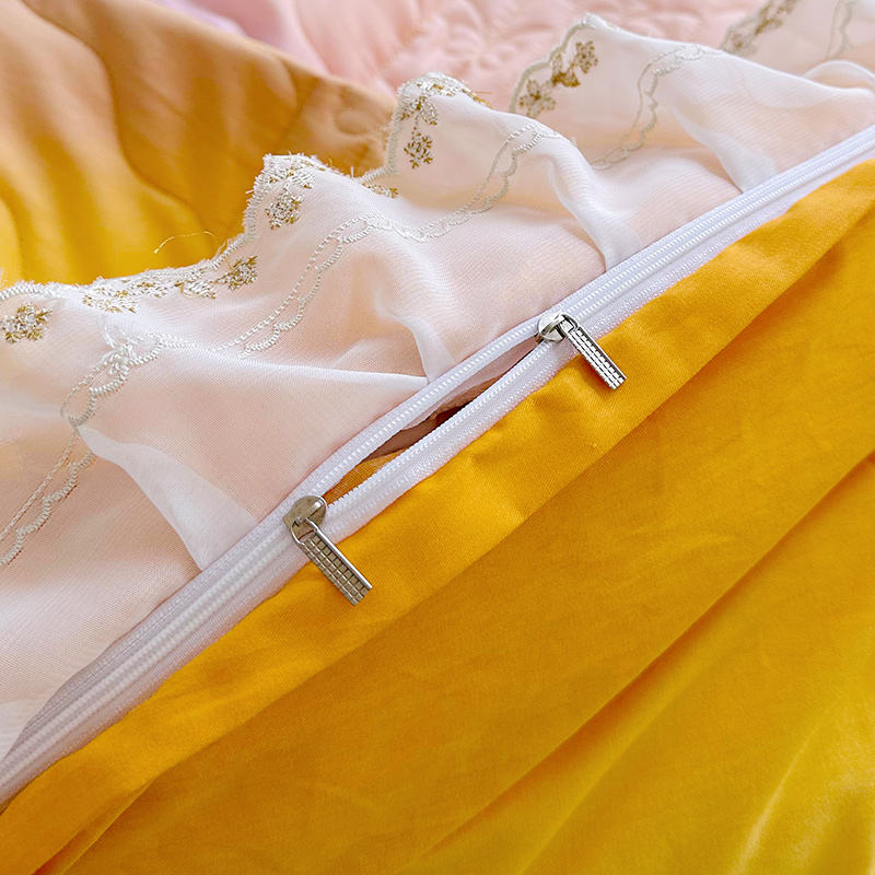 2023新款全棉蕾丝刺绣床盖四件套(夹棉被套) 杏黄