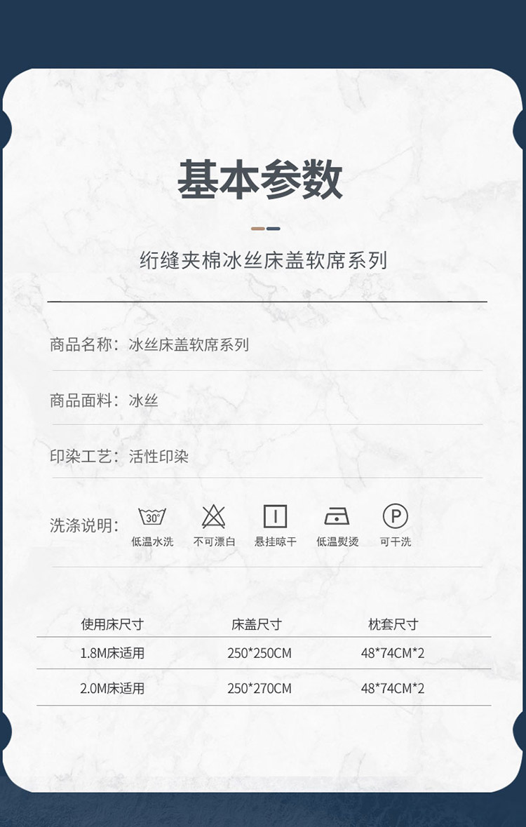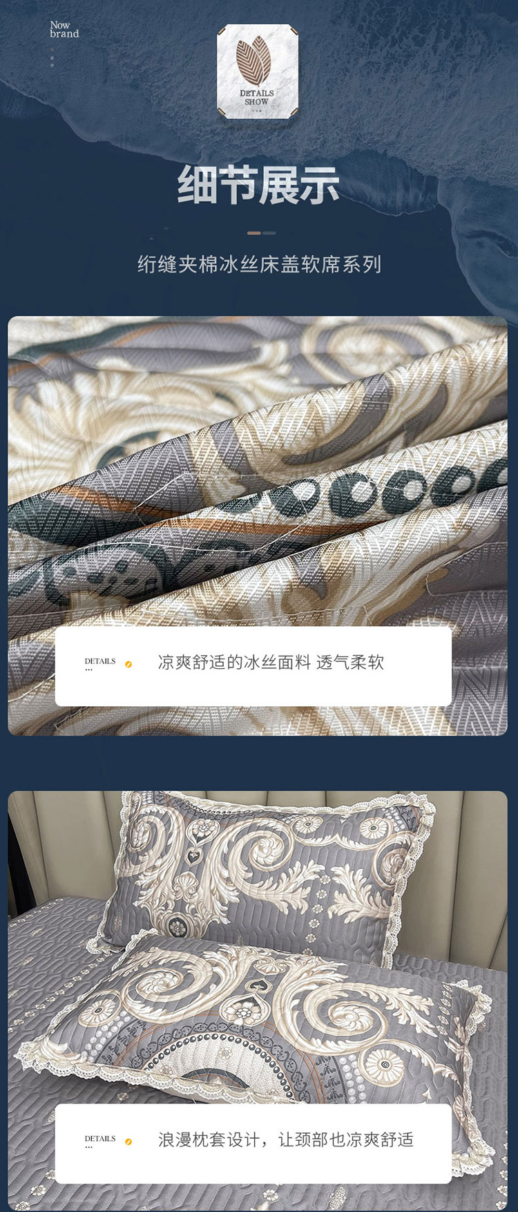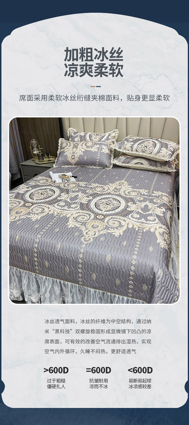 商品名称:恋尚 2023新款冰丝夹棉床盖款软凉席印花三件套 玲姗