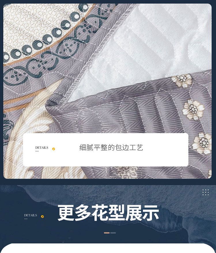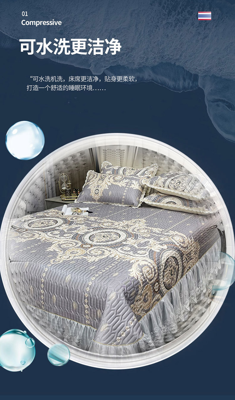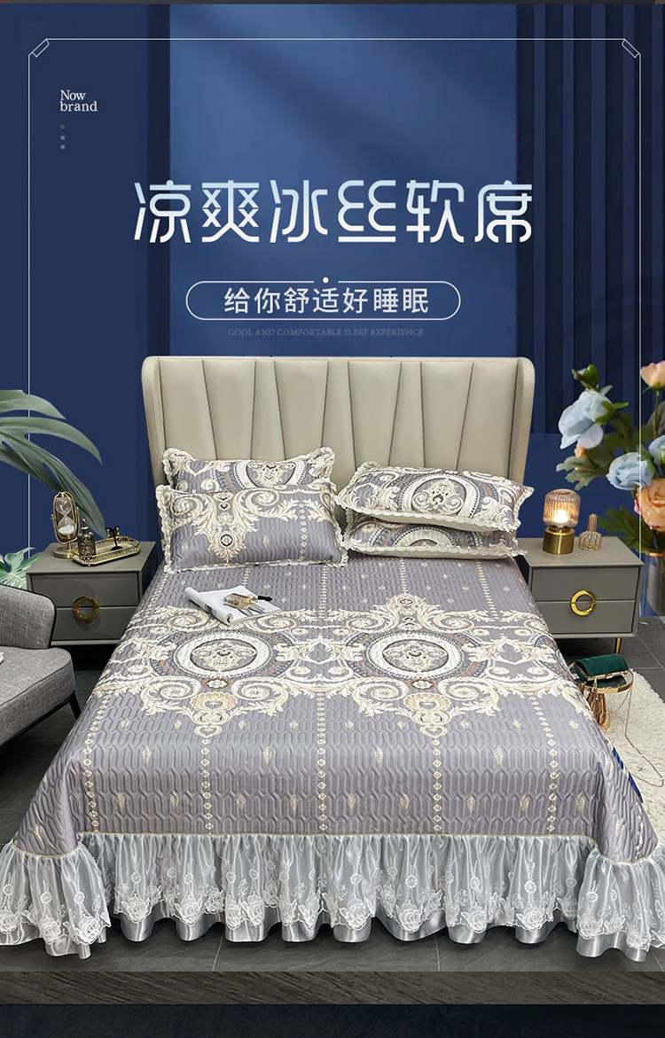 恋尚 2023新款冰丝夹棉床盖款软凉席印花三件套 玲姗
