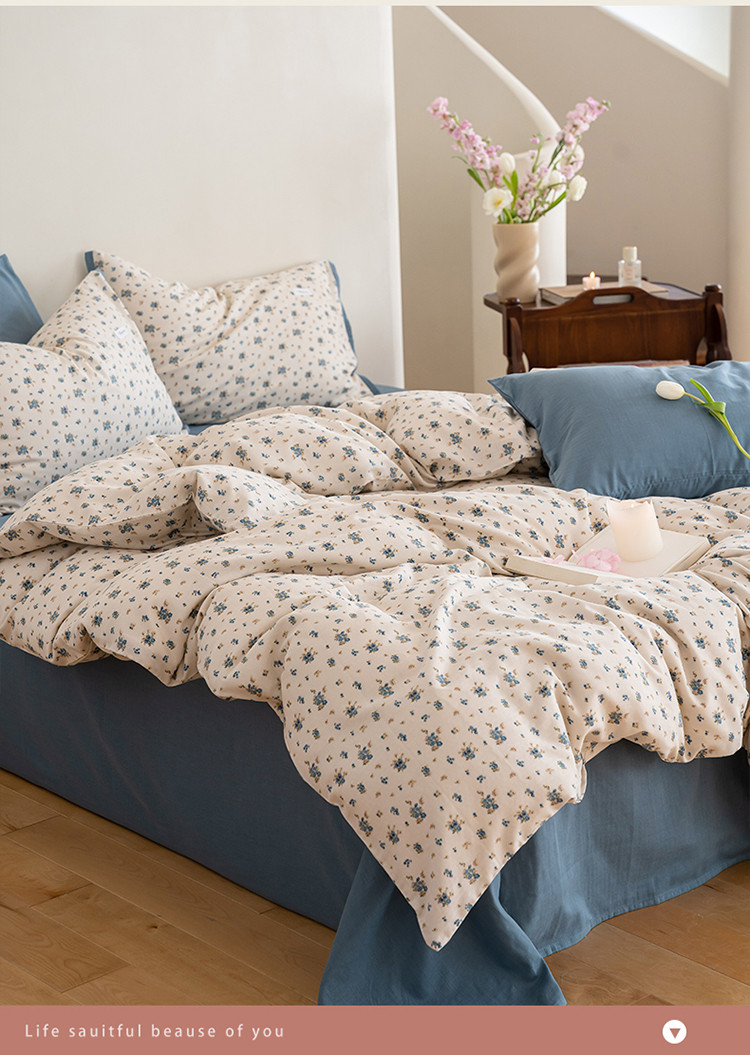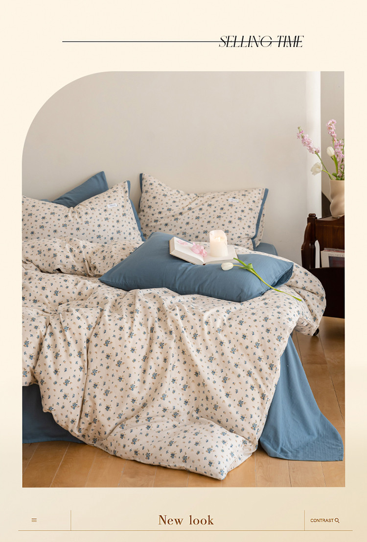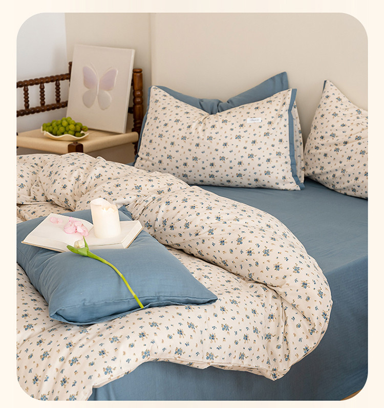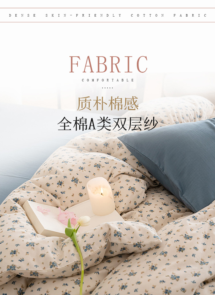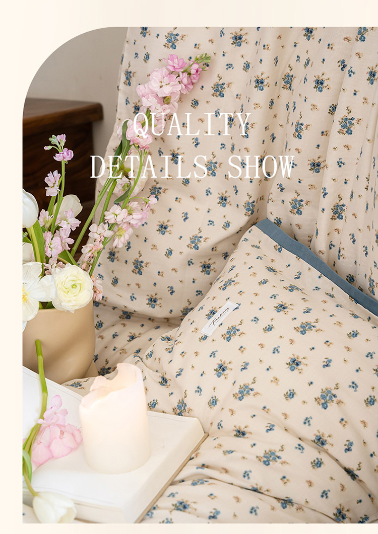 当前位置: 91家纺网 > 商品网购 > 床品套件 > 四件套 > 全棉普通四件套 > 2023时光里 春夏A类双层纱 四件套 蓝馨
