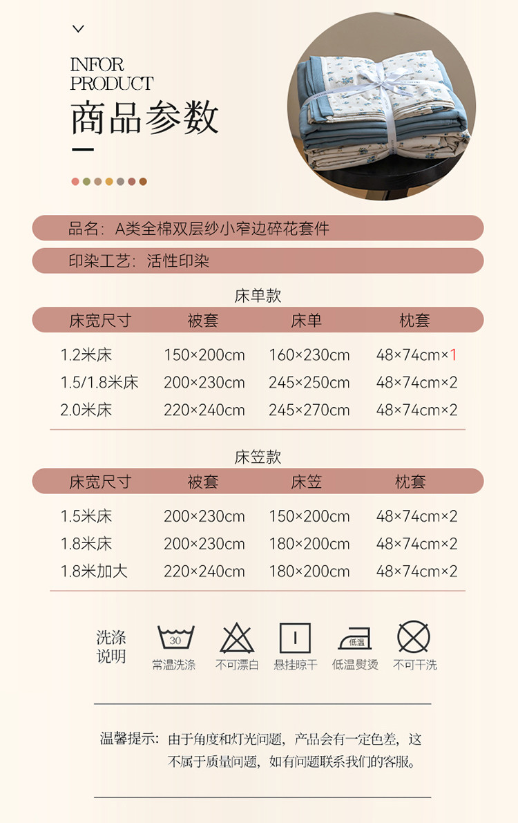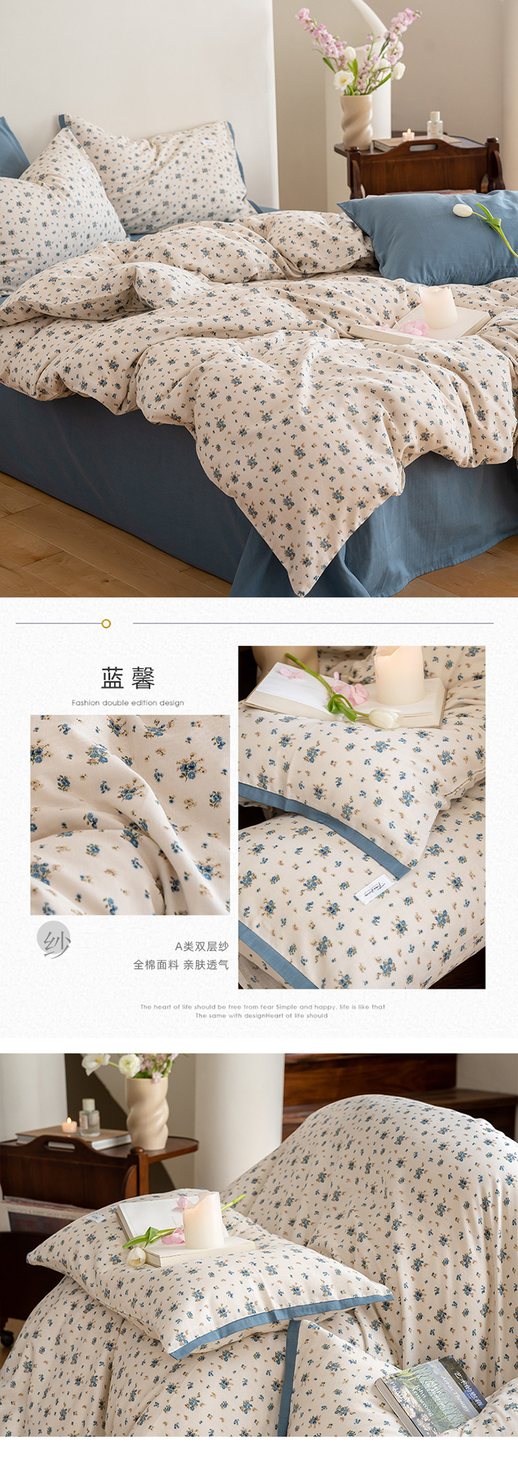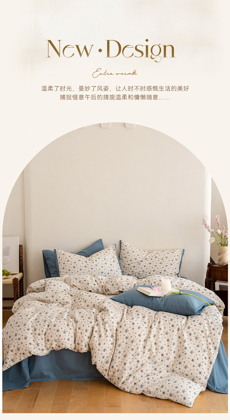 当前位置: 91家纺网 > 商品网购 > 床品套件 > 四件套 > 全棉普通四件套 > 2023时光里 春夏A类双层纱 四件套 蓝馨