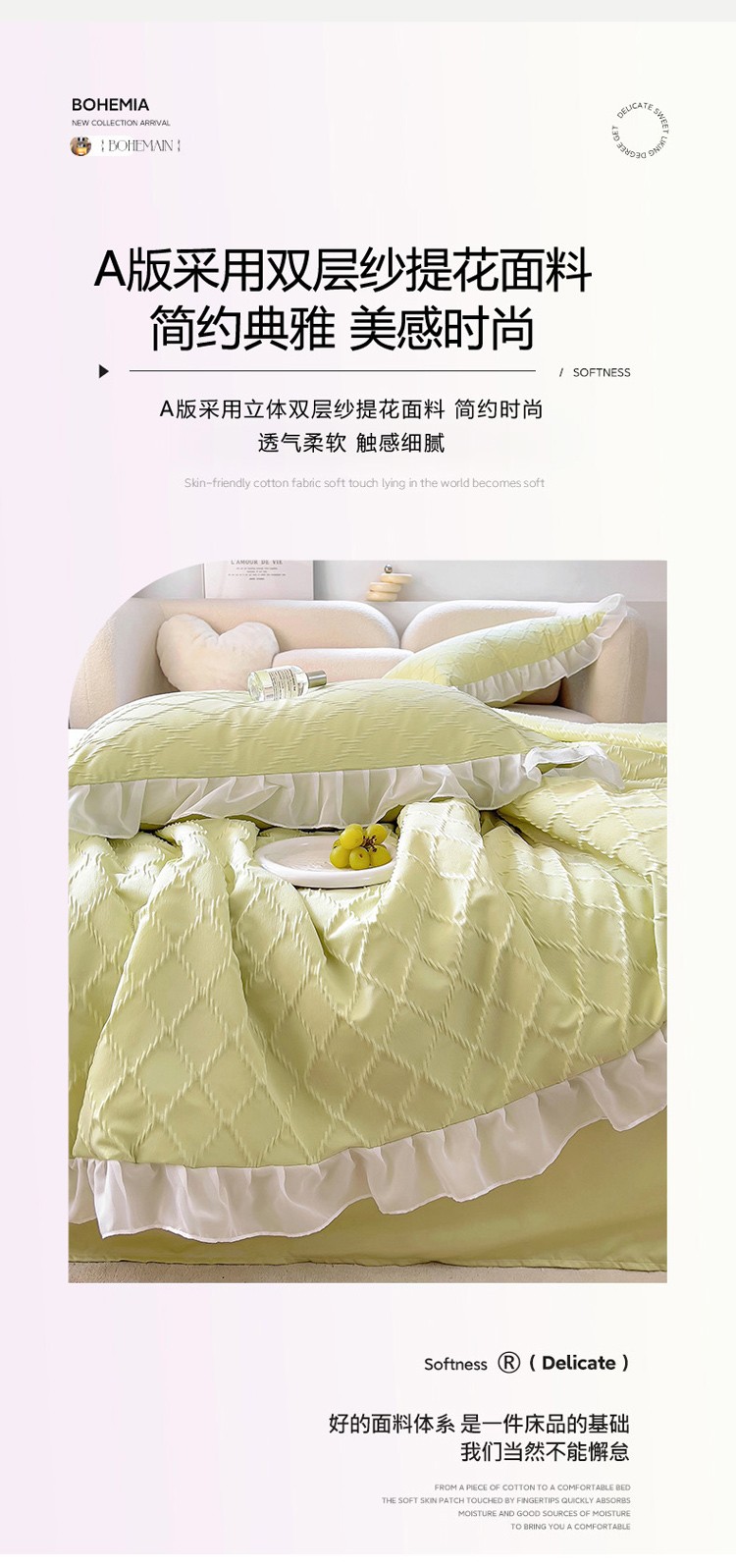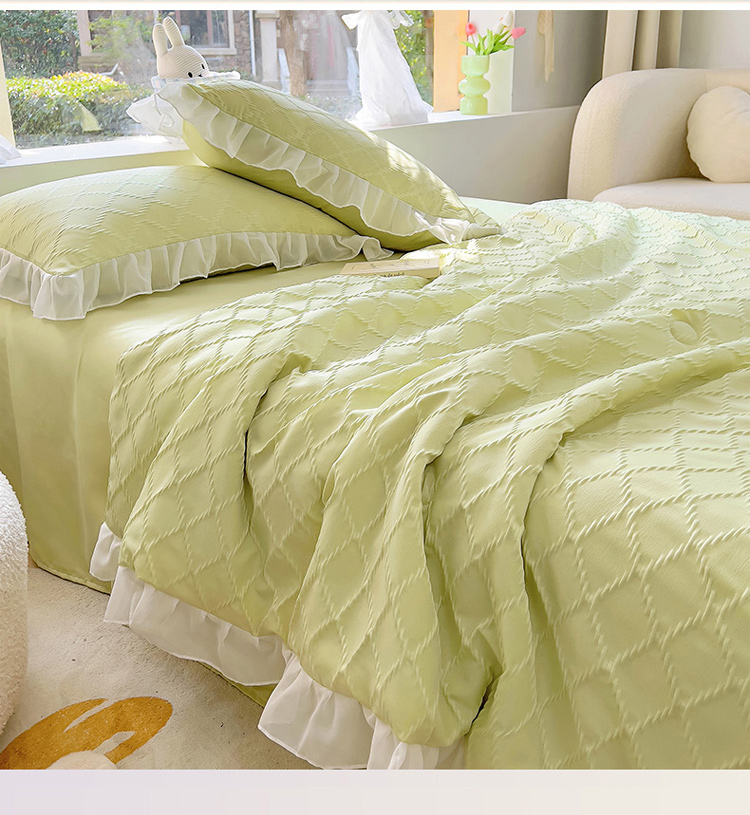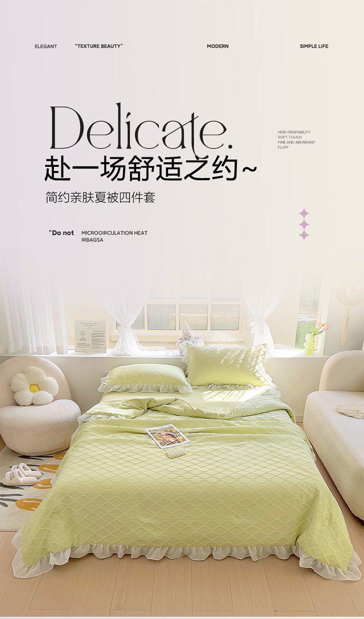 商品名称:沐慕 2023新款立体双层纱提花夏被四件套 芝芝抹茶