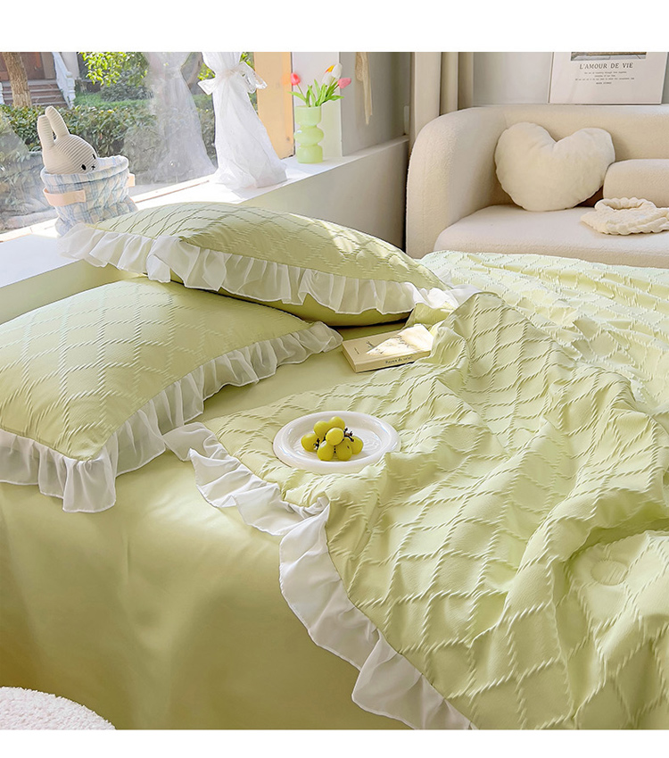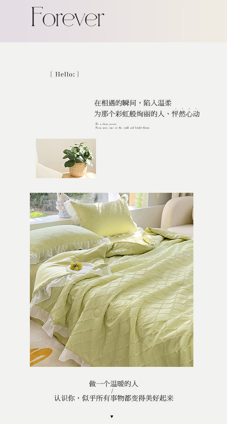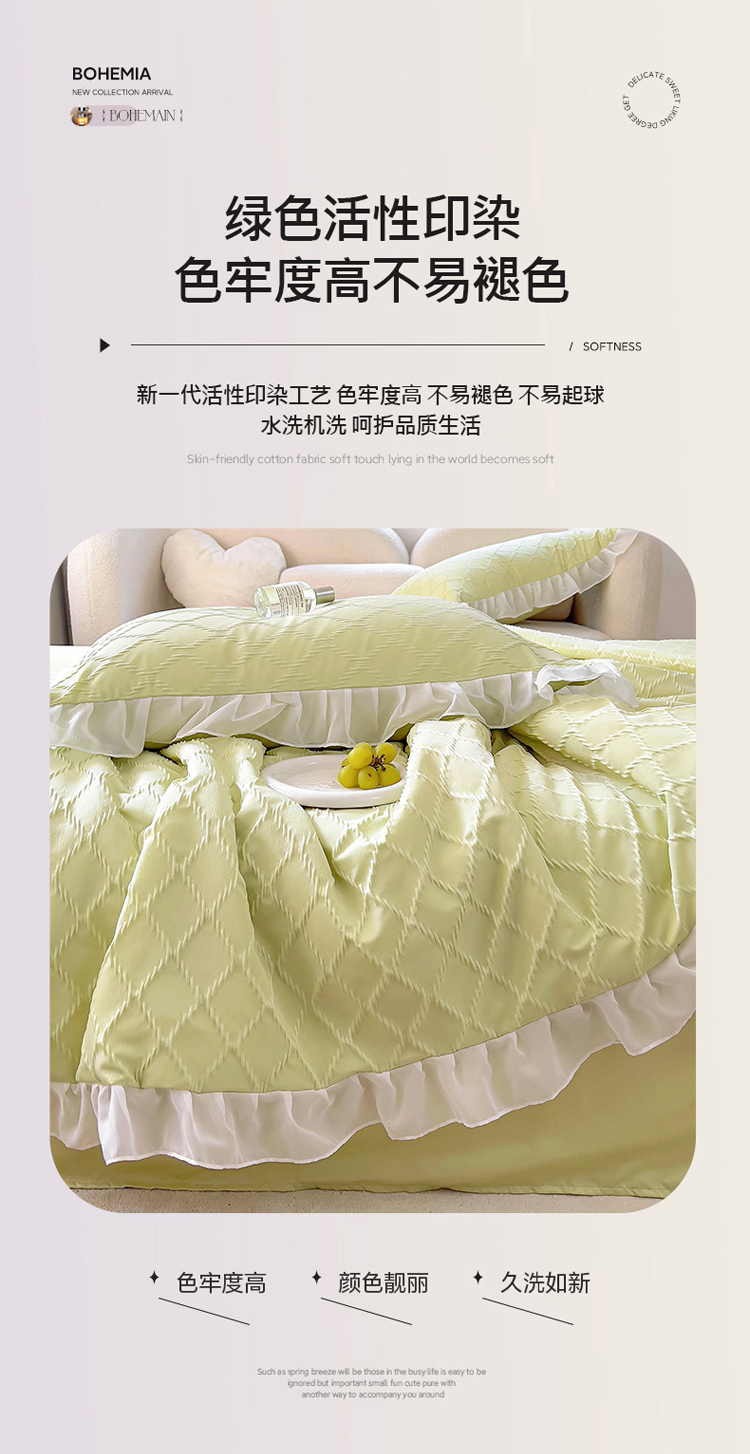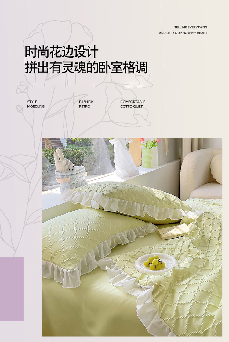商品名称:沐慕 2023新款立体双层纱提花夏被四件套 芝芝抹茶