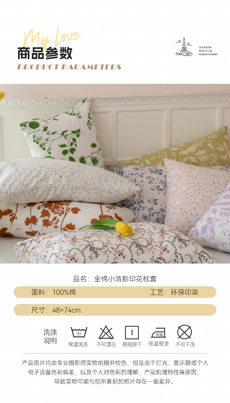 商品名称:2023时光里 春夏全棉印花系列 枕套 洛妍
