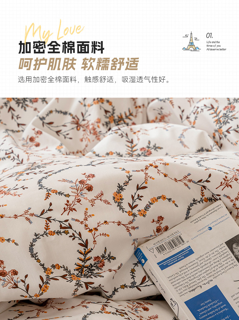 (总)时光里 2025新款230克全消光印花10色专版花型四件套,缤纷熊,狗狗乐园-蓝,花兔兔,花漾,开心腊肠,猫咪日记,木槿,森林兔,线团小咪,小雏菊