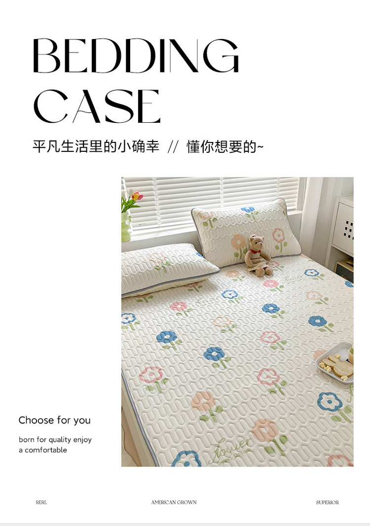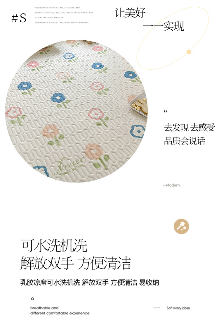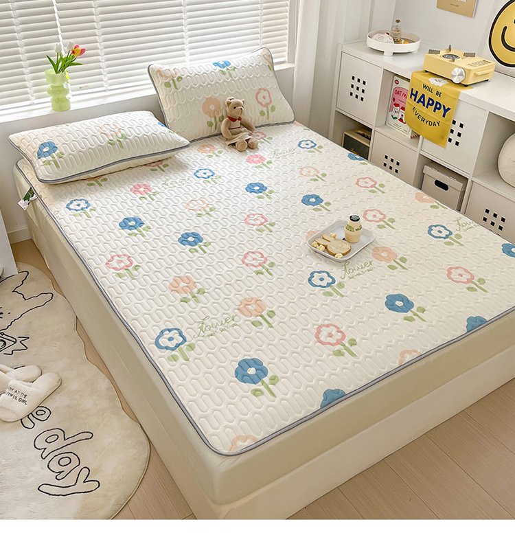 商品名称:沐慕 2023新款小清新床笠款乳胶凉席 彩花朵朵