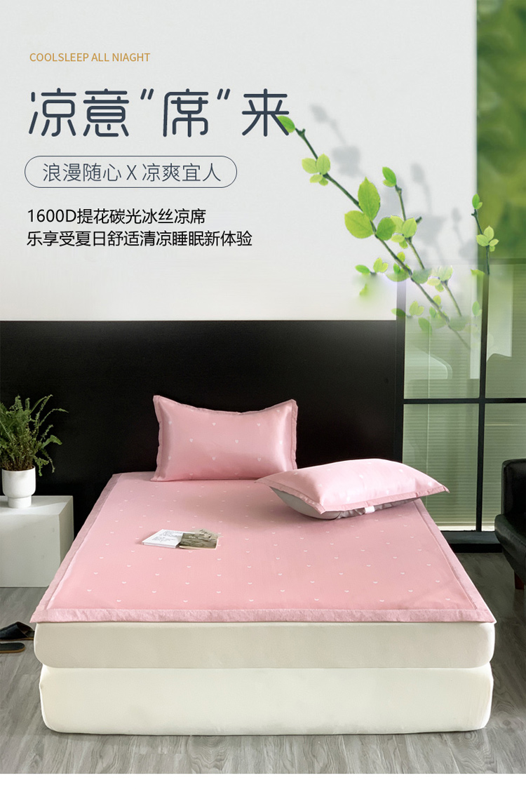 商品名称:沐慕 2023新款提花冰丝席 爱心-粉