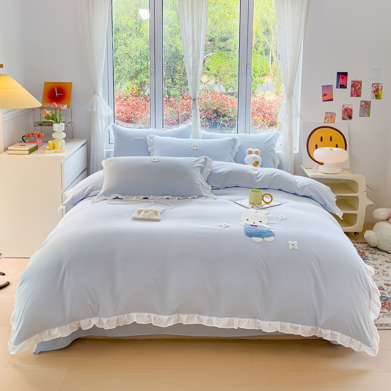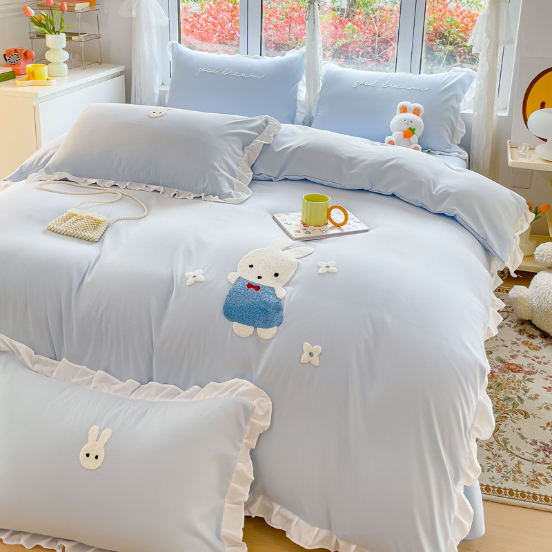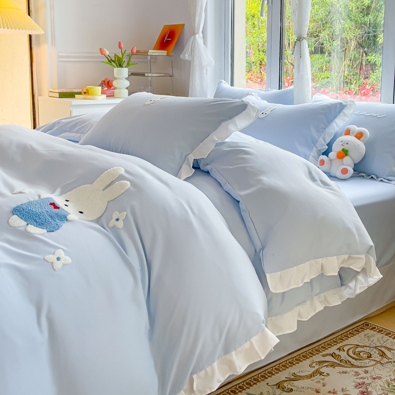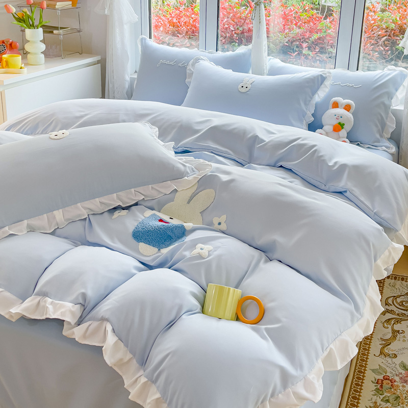 麦朵家居2023新款毛巾绣花边款四件套幸福兔系列 幸福兔-兰