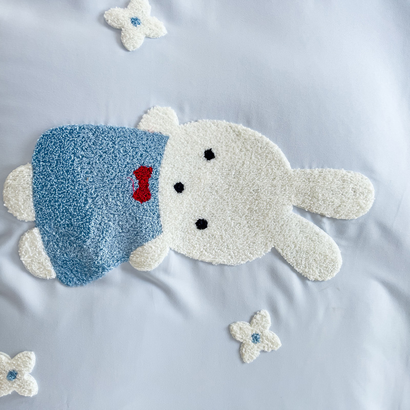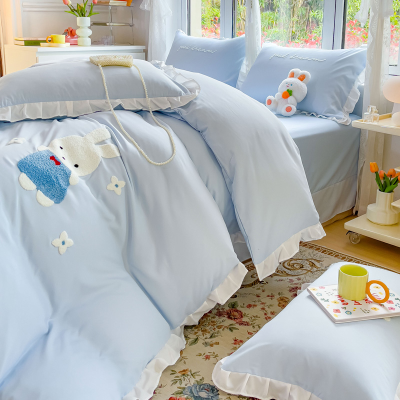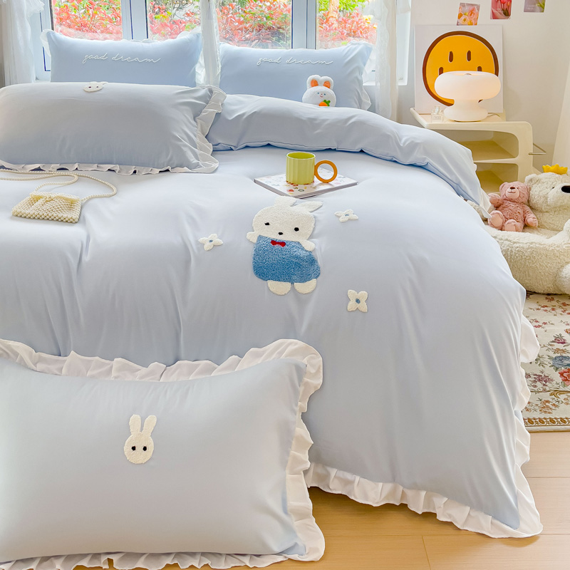 商品名称:麦朵家居2023新款毛巾绣花边款四件套幸福兔系列 幸福兔-兰