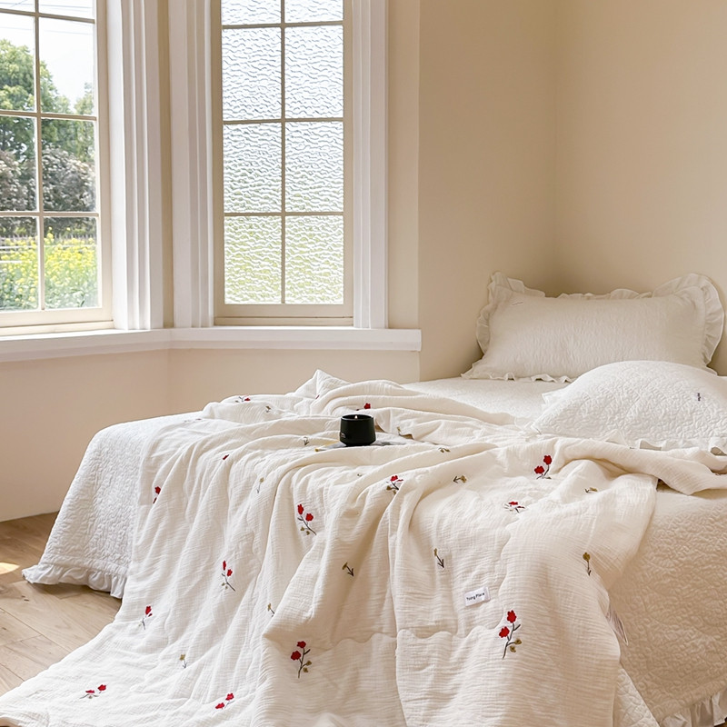 洋铭区 2023新款全棉皱皱双层纱夏被 小花仙