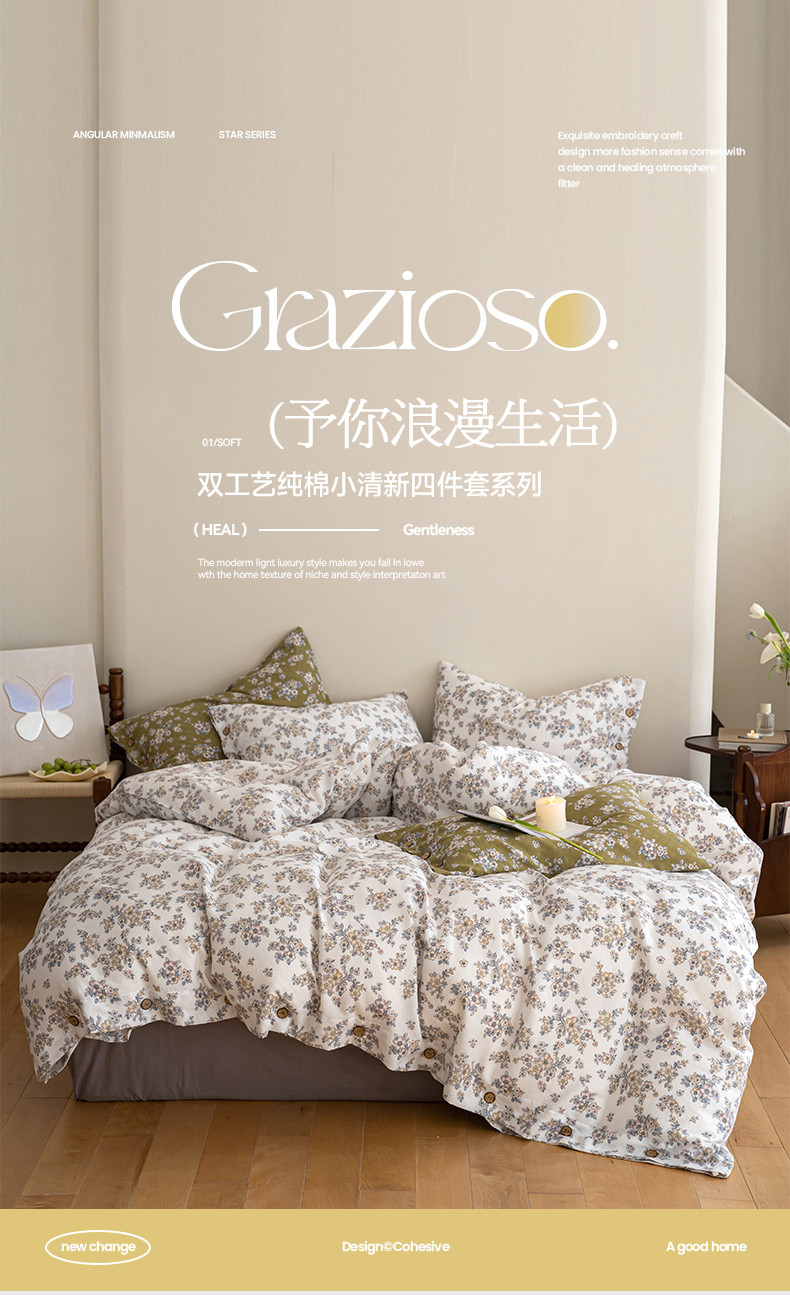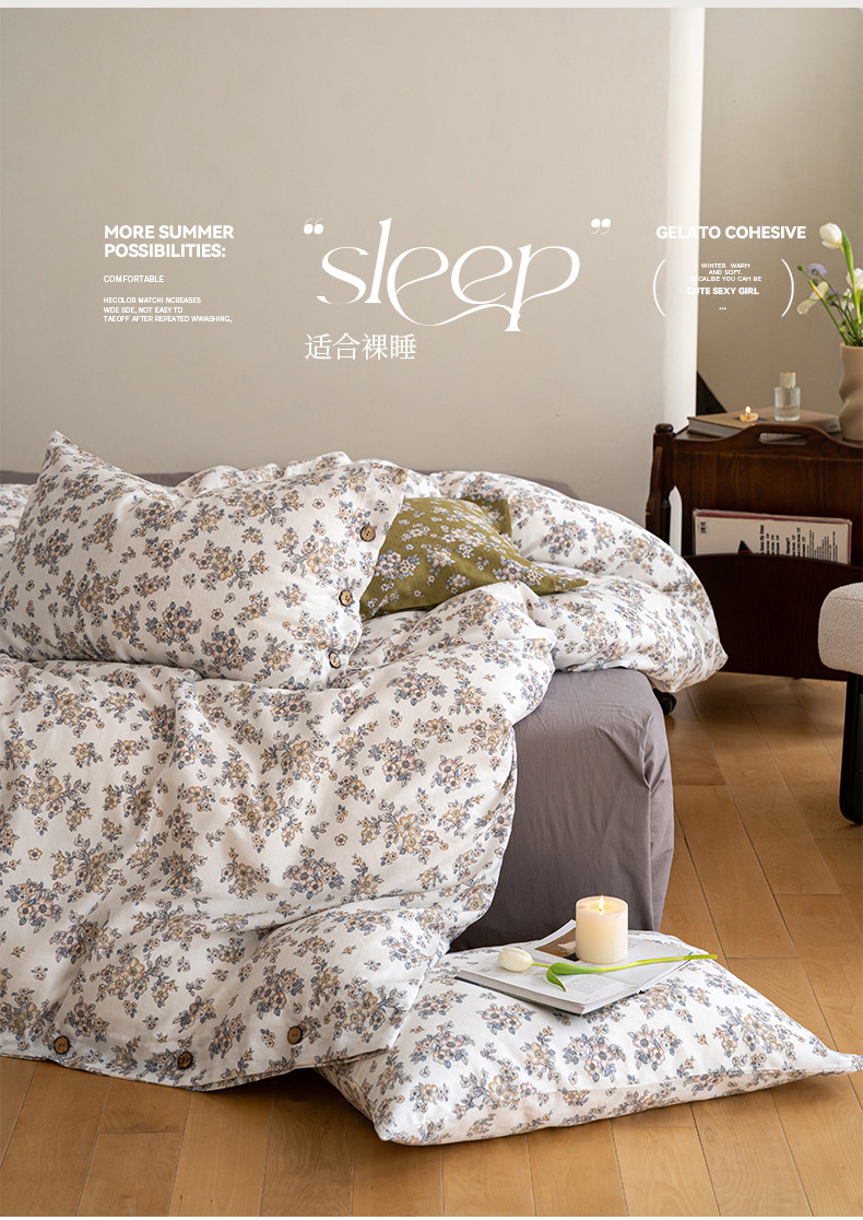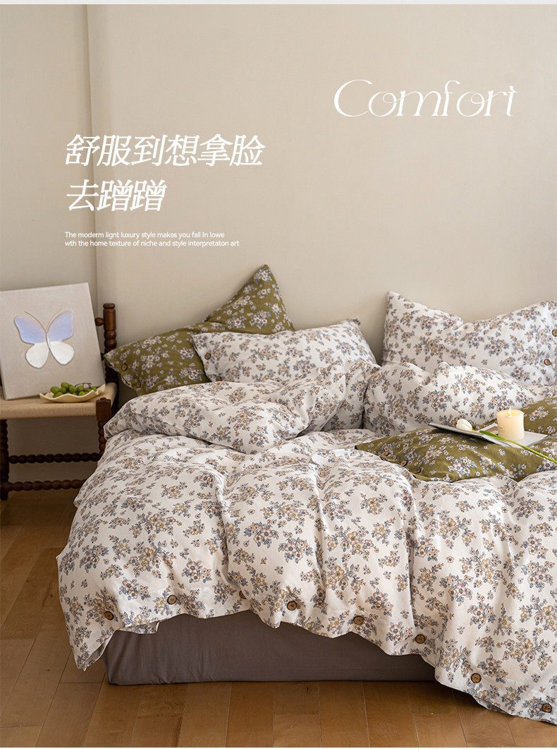 (总)华超针织 2025新款亲肤舒适全棉纯棉针织五件套四件套,奶糖+樱桃,杏粉+花田,杏灰+玫瑰