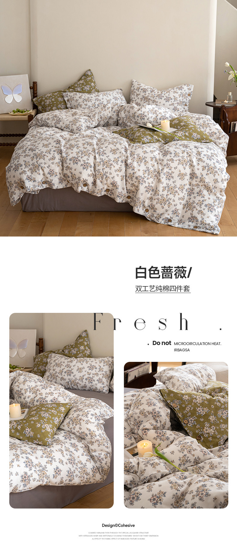商品名称:华超针织 2023新款双工艺全棉四件套 白色蔷薇