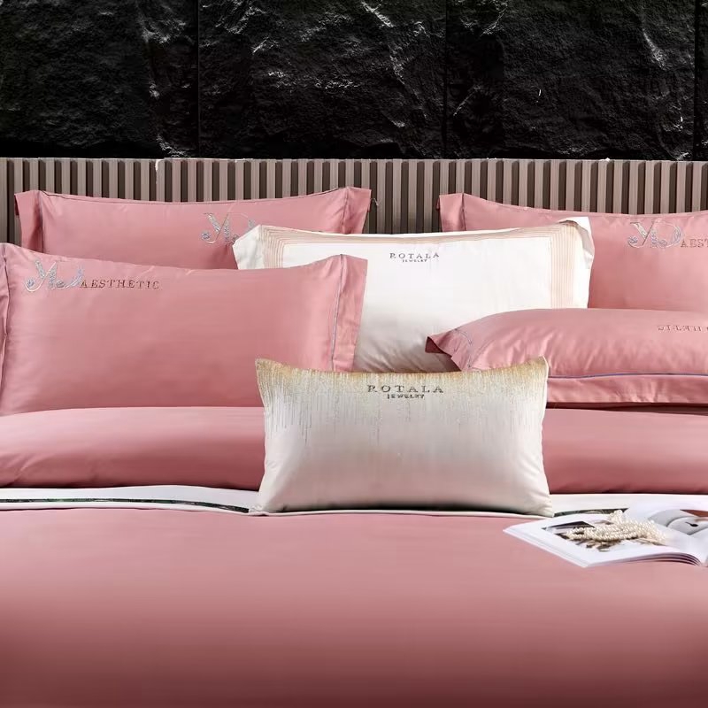 当前位置: 91家纺网 > 商品网购 > 床品套件 > 四件套 > 长绒棉四件套 > 50s双股长绒棉刺绣花贡缎纯棉全棉四件套 祖马龙-樱花粉(刺绣)