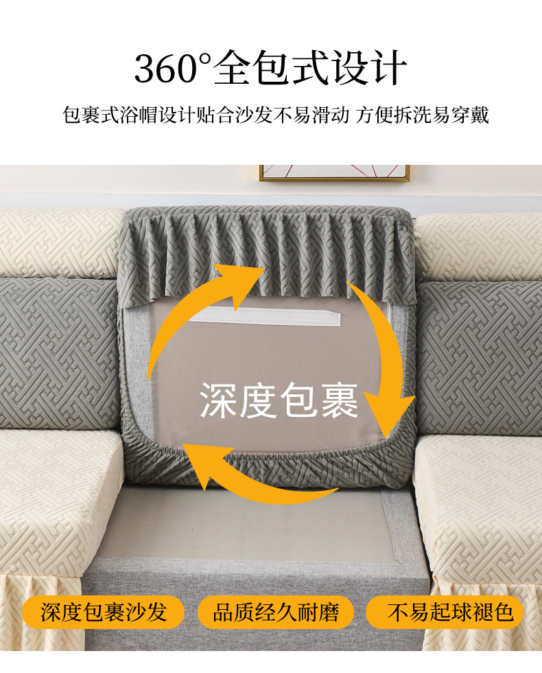 当前位置: 91家纺网 > 商品网购 > 居家布艺 > 坐垫/椅垫/沙发垫 > 沙发垫 > 千彤沙发垫 2023新款裙边-韵律系列沙发套罩-沙发笠 深灰米白