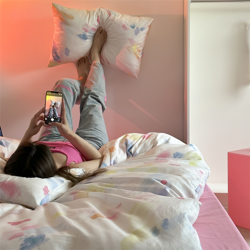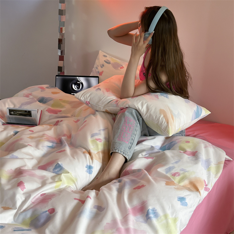 昔可 2023新款夏日多巴胺全棉四件套 彩色画盘