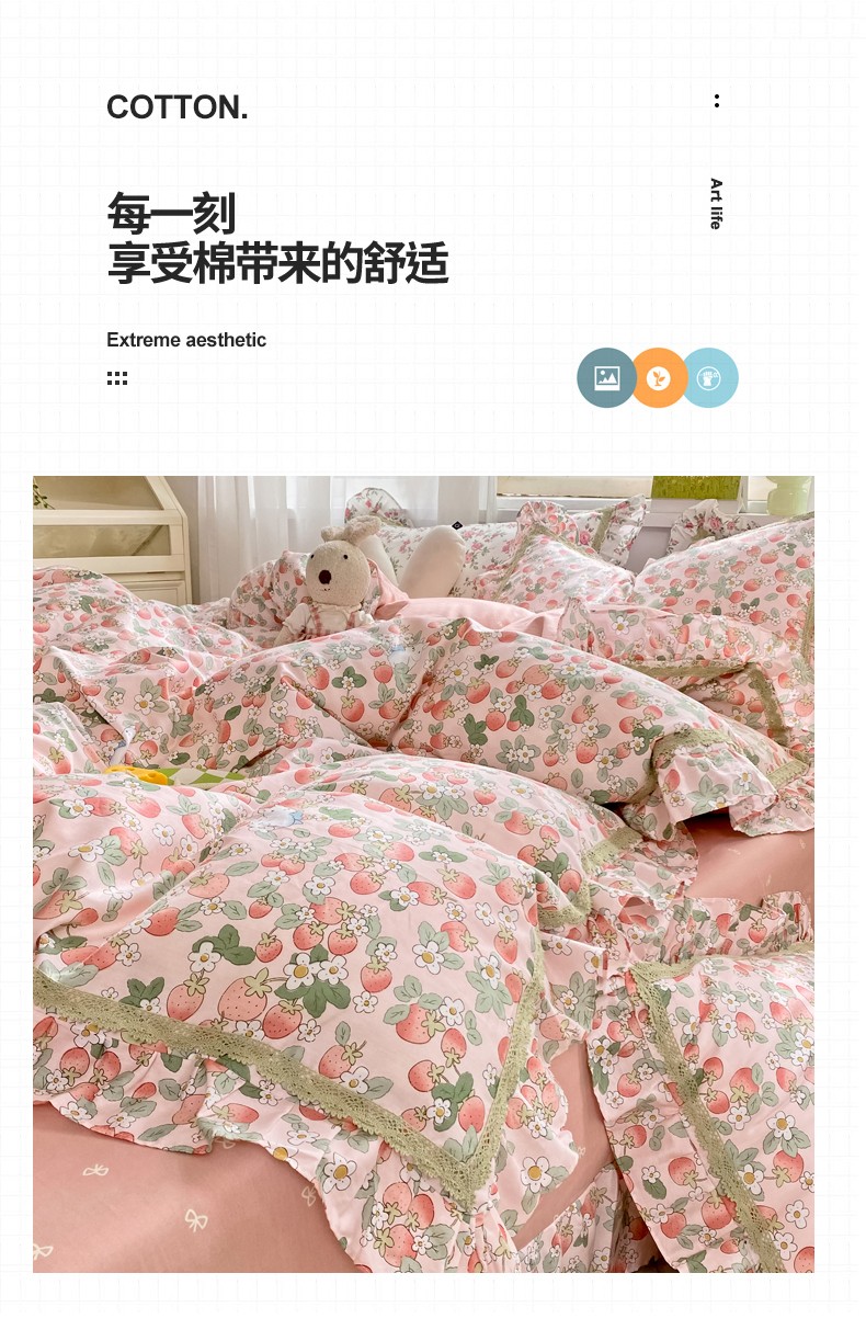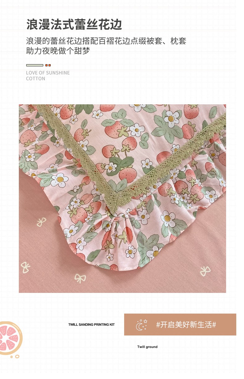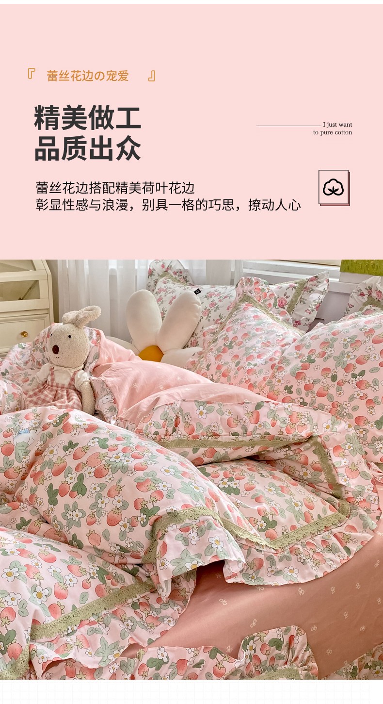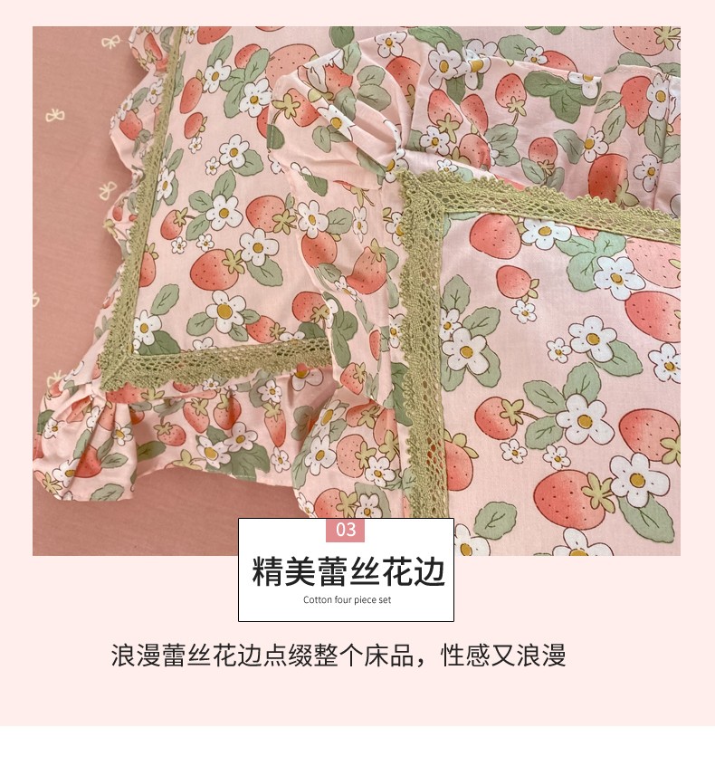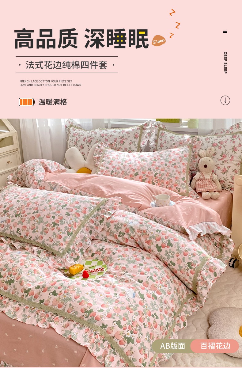商品名称:艾唯希 2024新款法式花边全棉四件套 甜心草莓