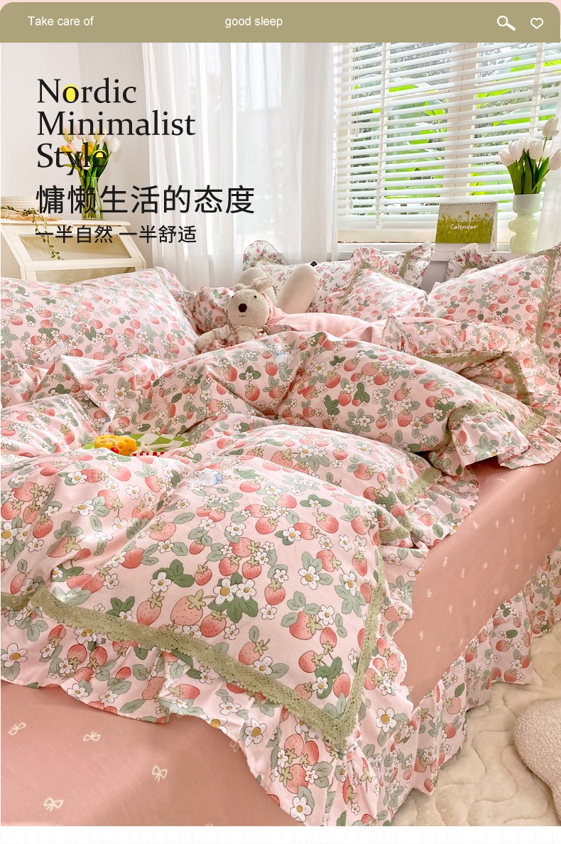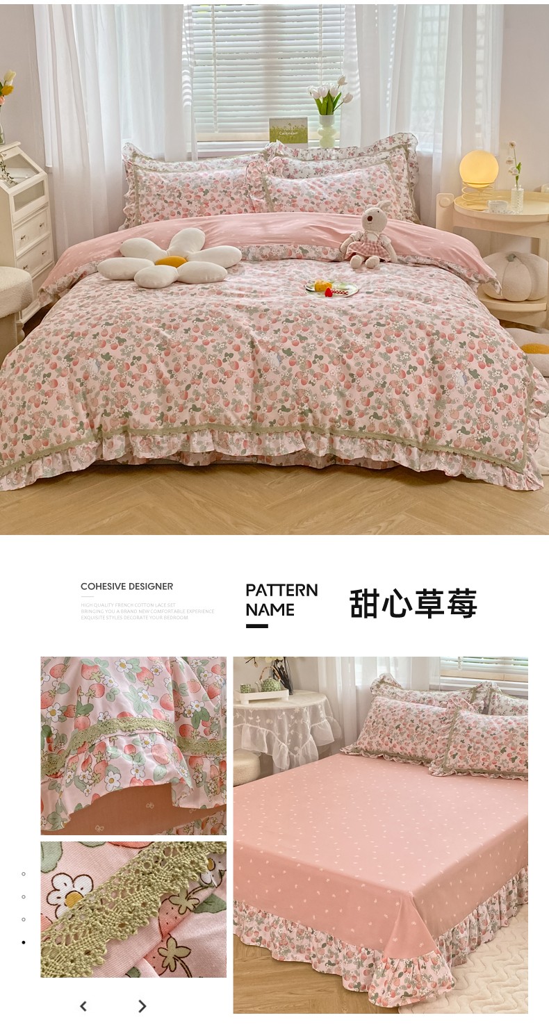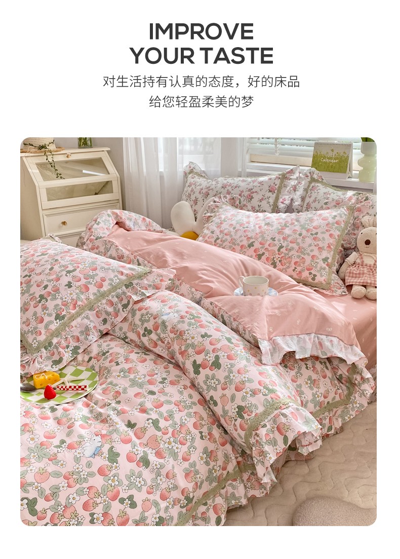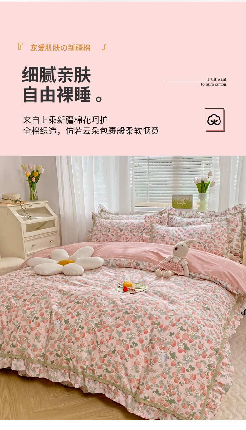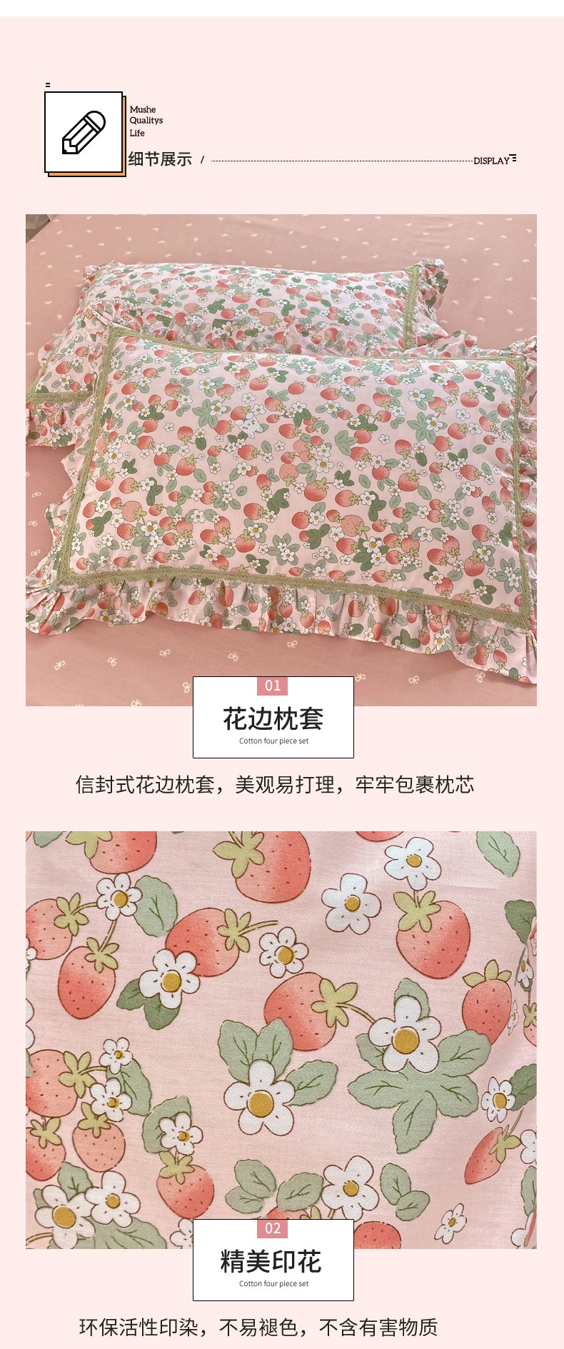 商品名称:艾唯希 2024新款法式花边全棉四件套 甜心草莓