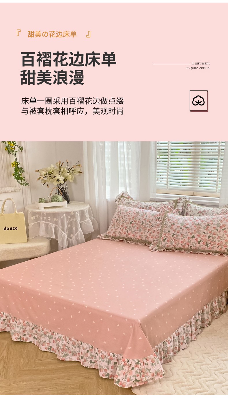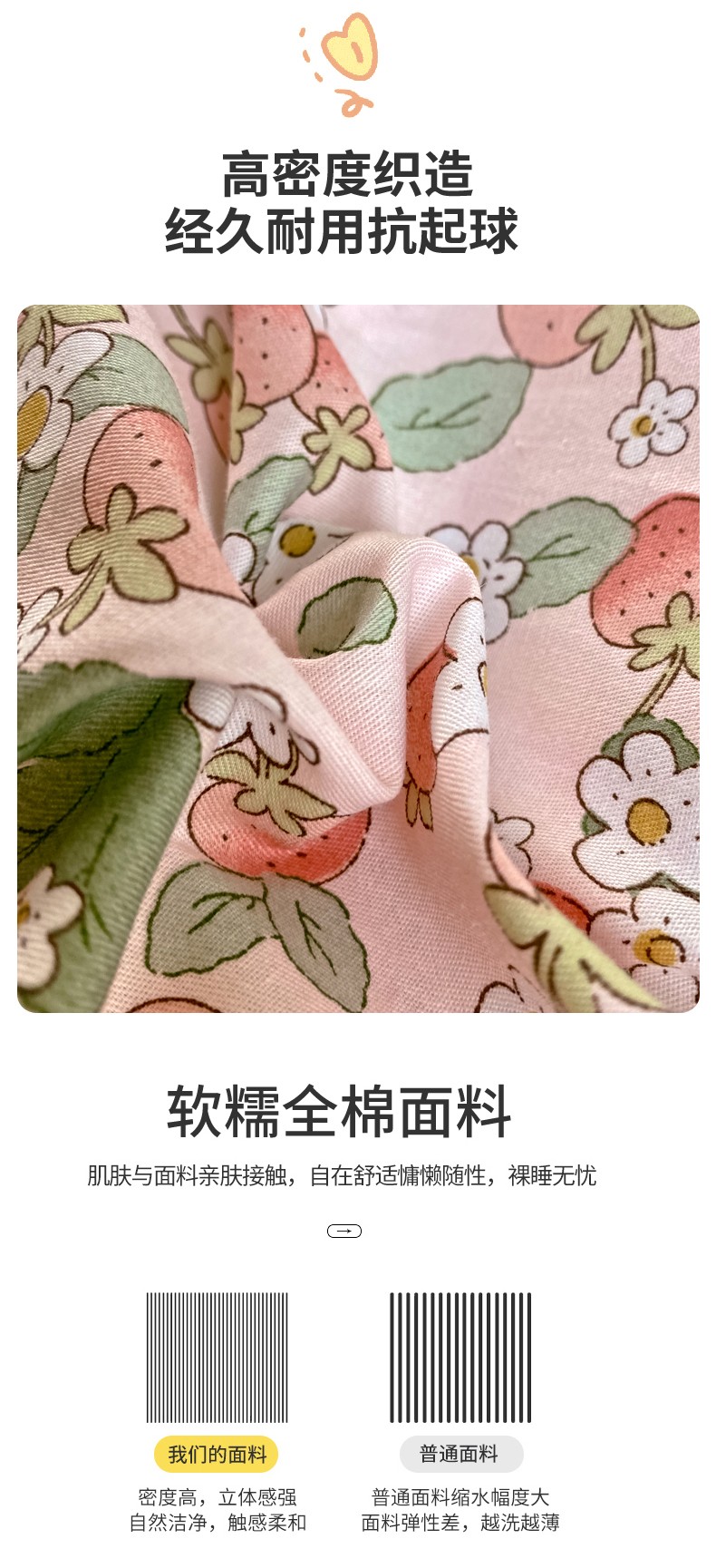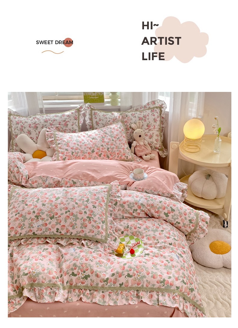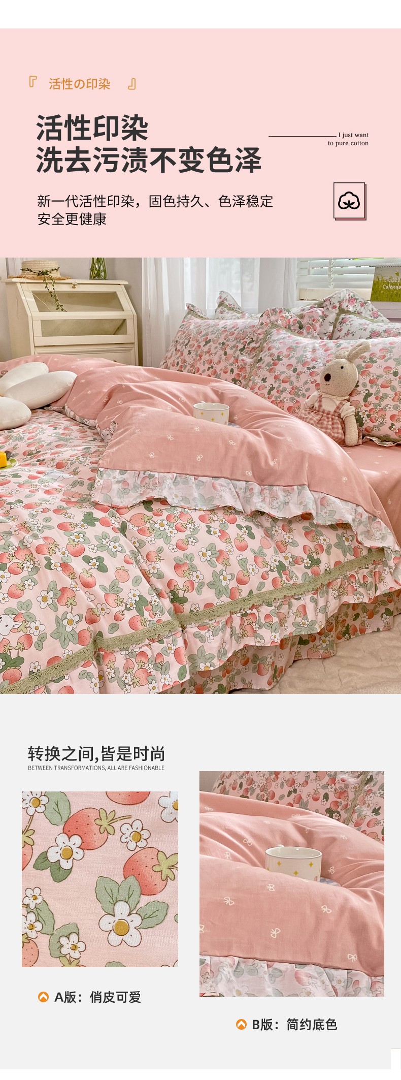 商品名称:艾唯希 2024新款法式花边全棉四件套 甜心草莓